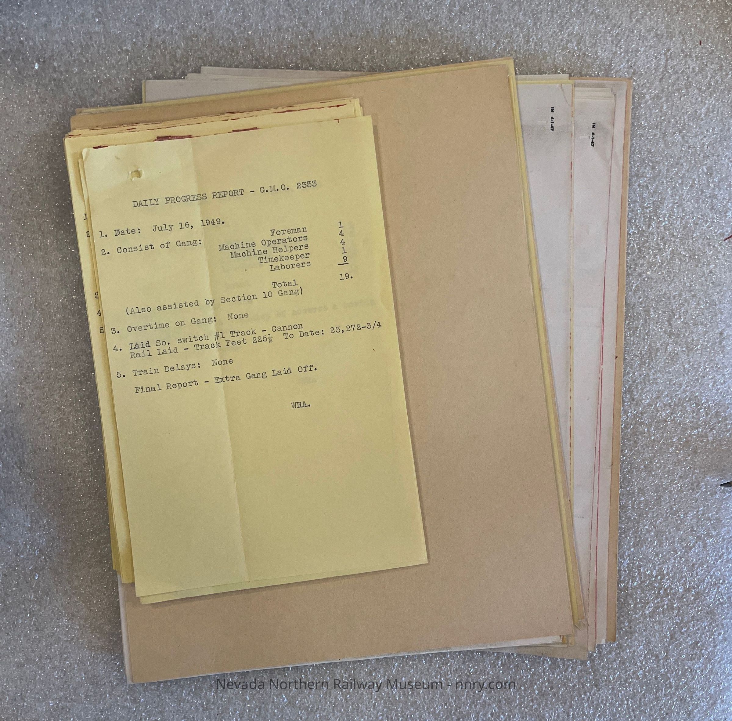 Daily progress reports for work done on GMO 2333, 1949.Creator