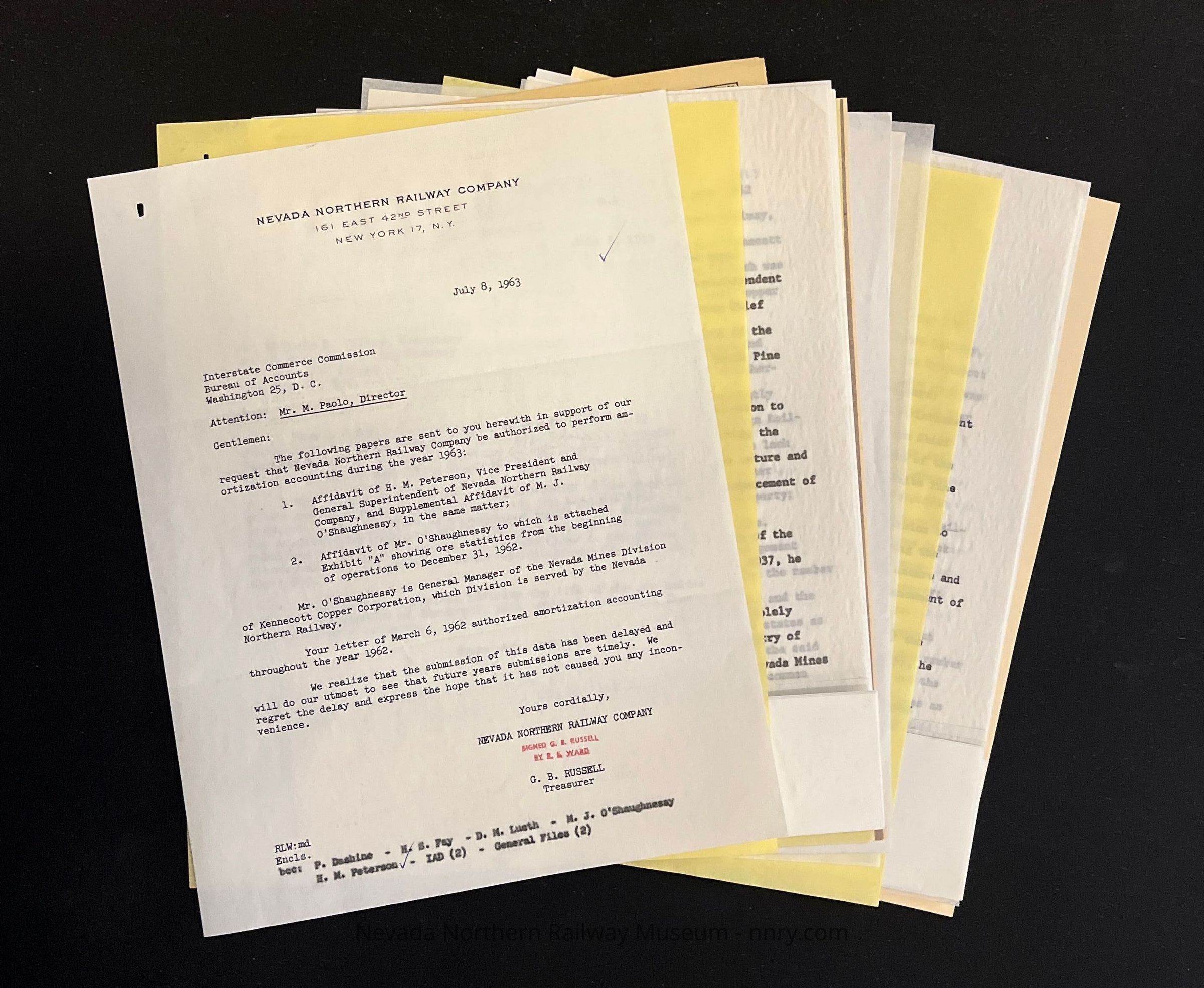 Various pieces of correspondence with the ICC regarding depreciation, 1962-1963.Creator
