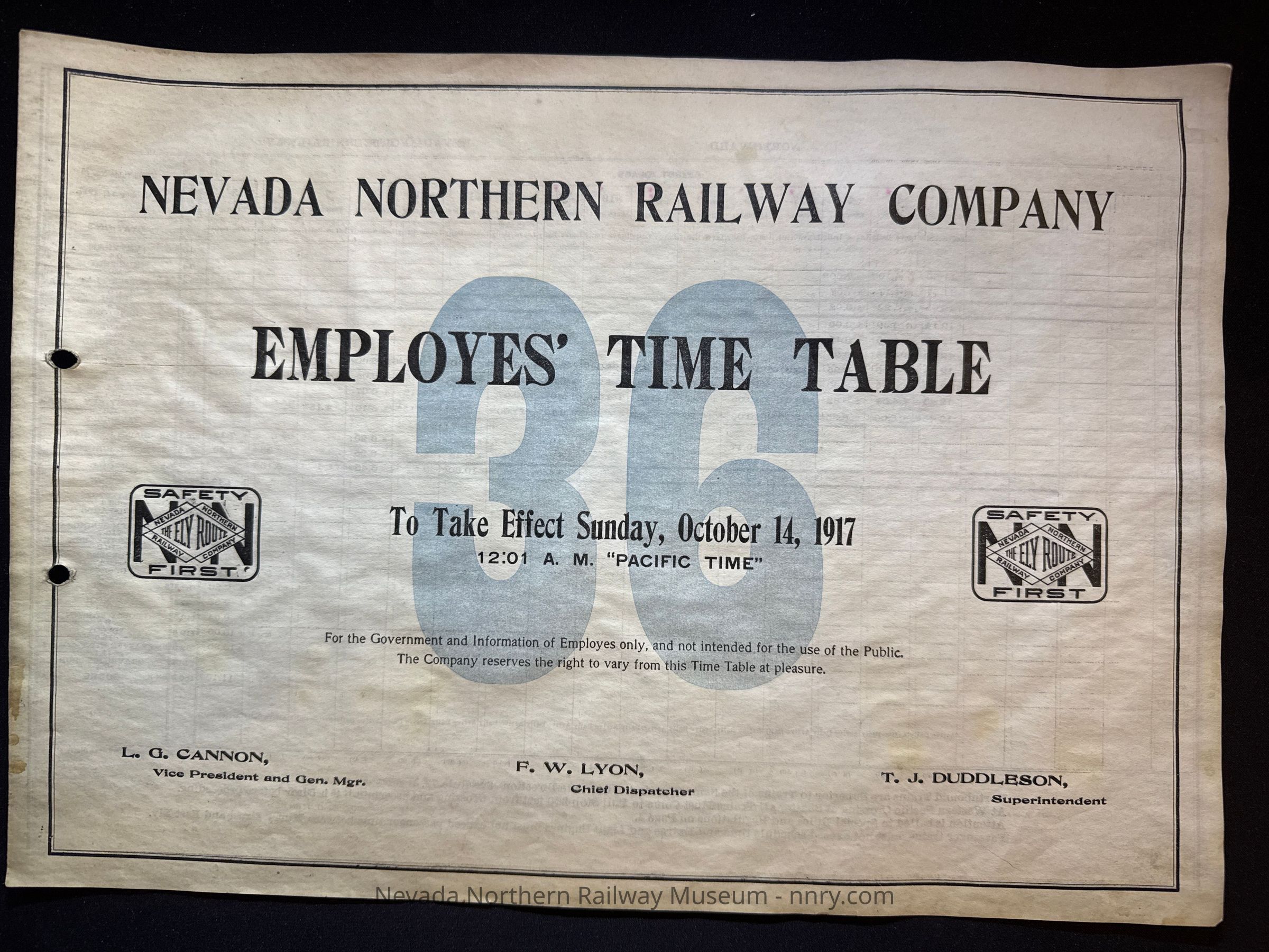 Nevada Northern Railway timetable no. 36, October 14, 1917.