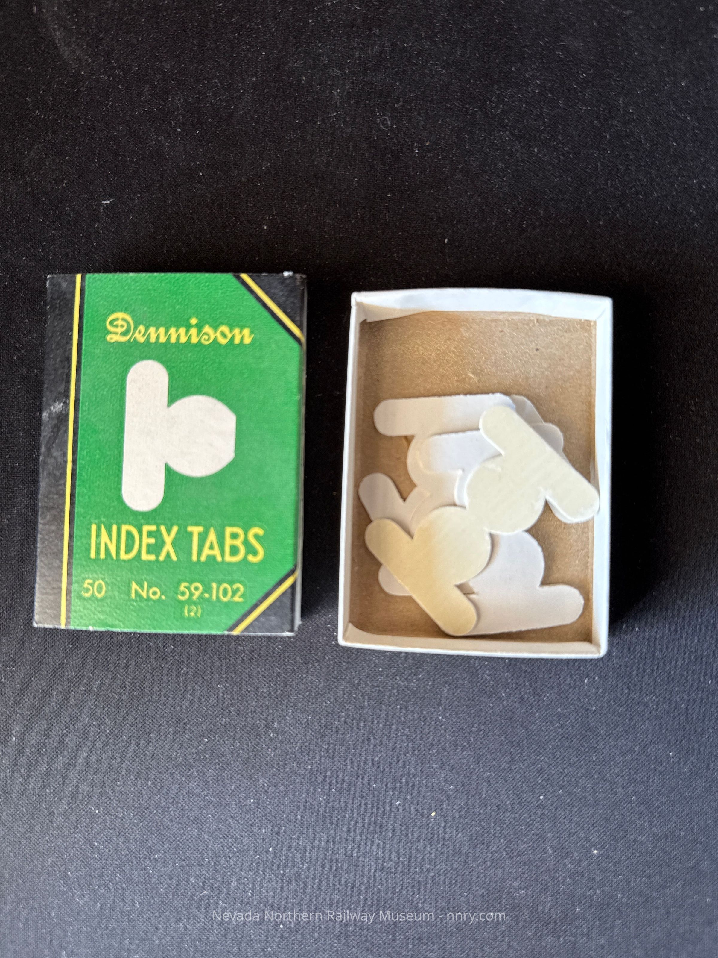 Box of Dennison index tabs, no. 59-102, with unused tags.Acquisition