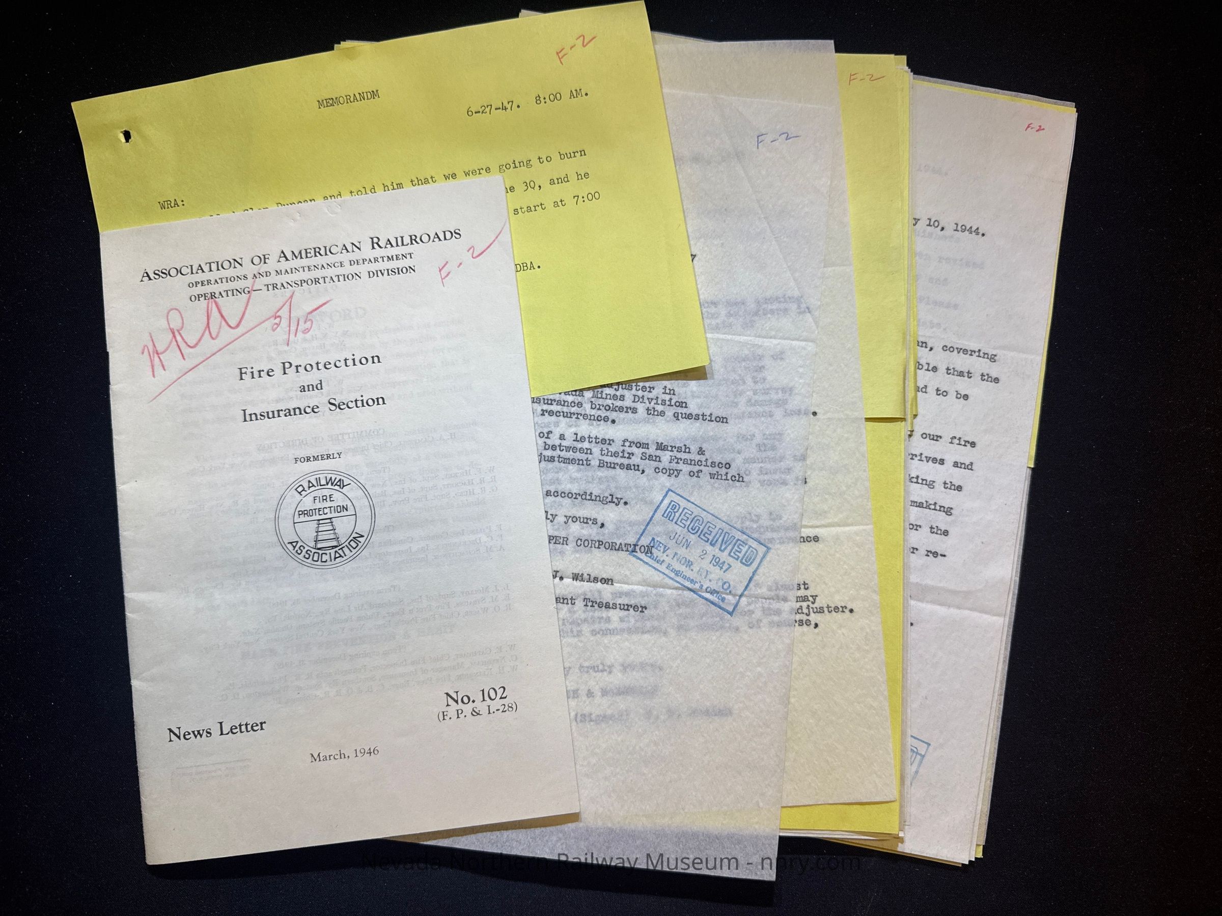 Manual "Fire Protection and Insurance Section" from the Railway Fire Protection Association of the AAR, March 1946.Creator