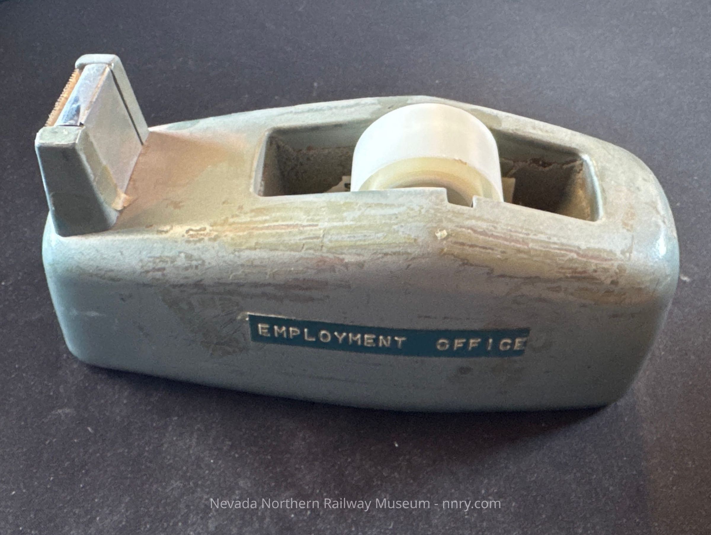 Scotch tape desk dispenser Model C-20, labeled for the Employment Office.Made/Created
