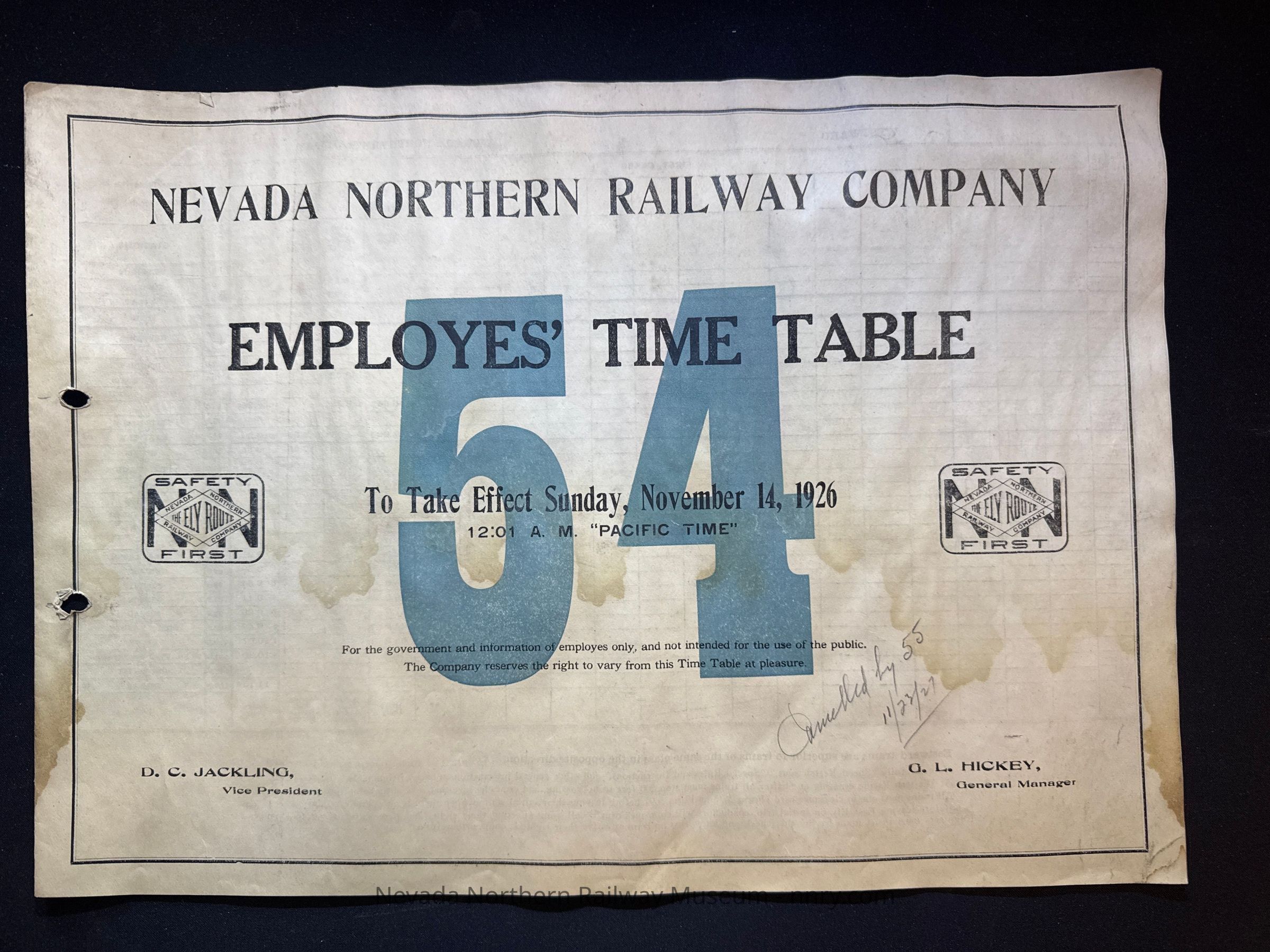 Nevada Northern Railway timetable no. 54, November 14, 1926.
