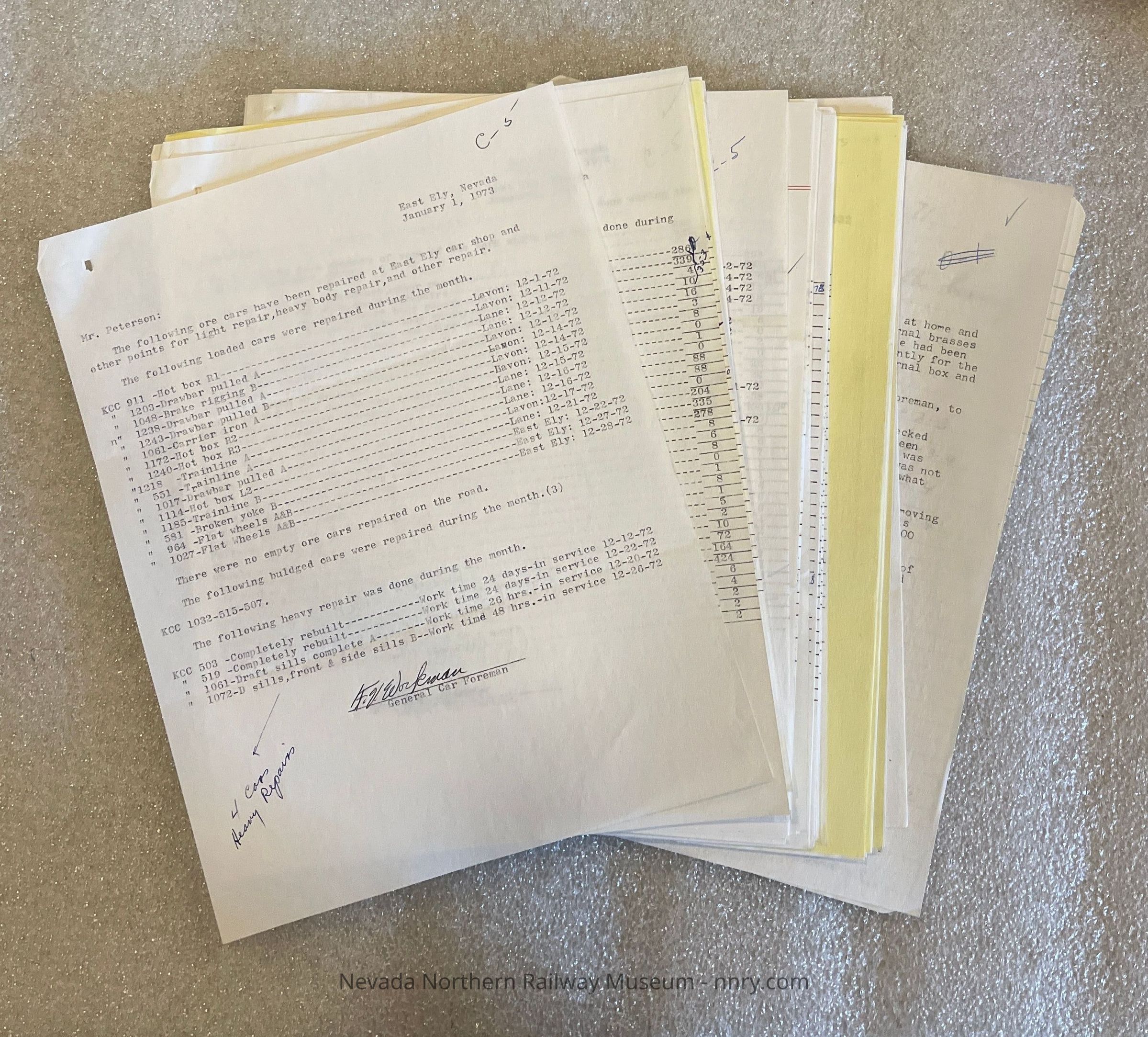 Reports of ore car repairs at the East Ely repair shop.Creator