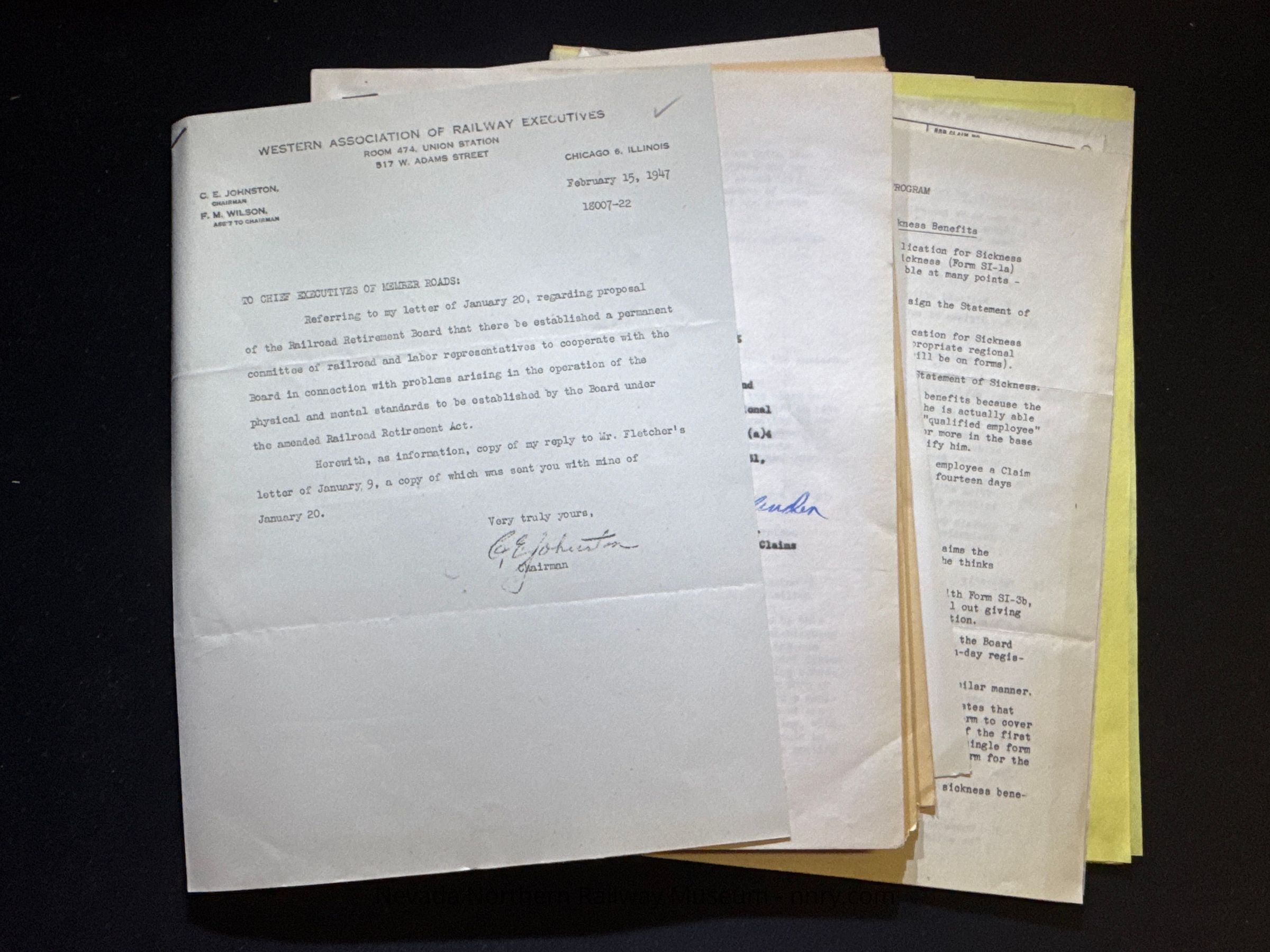 Various correspondence and reports regarding employee pensions with the Railroad Retirement Board, 1946-1947.Creator