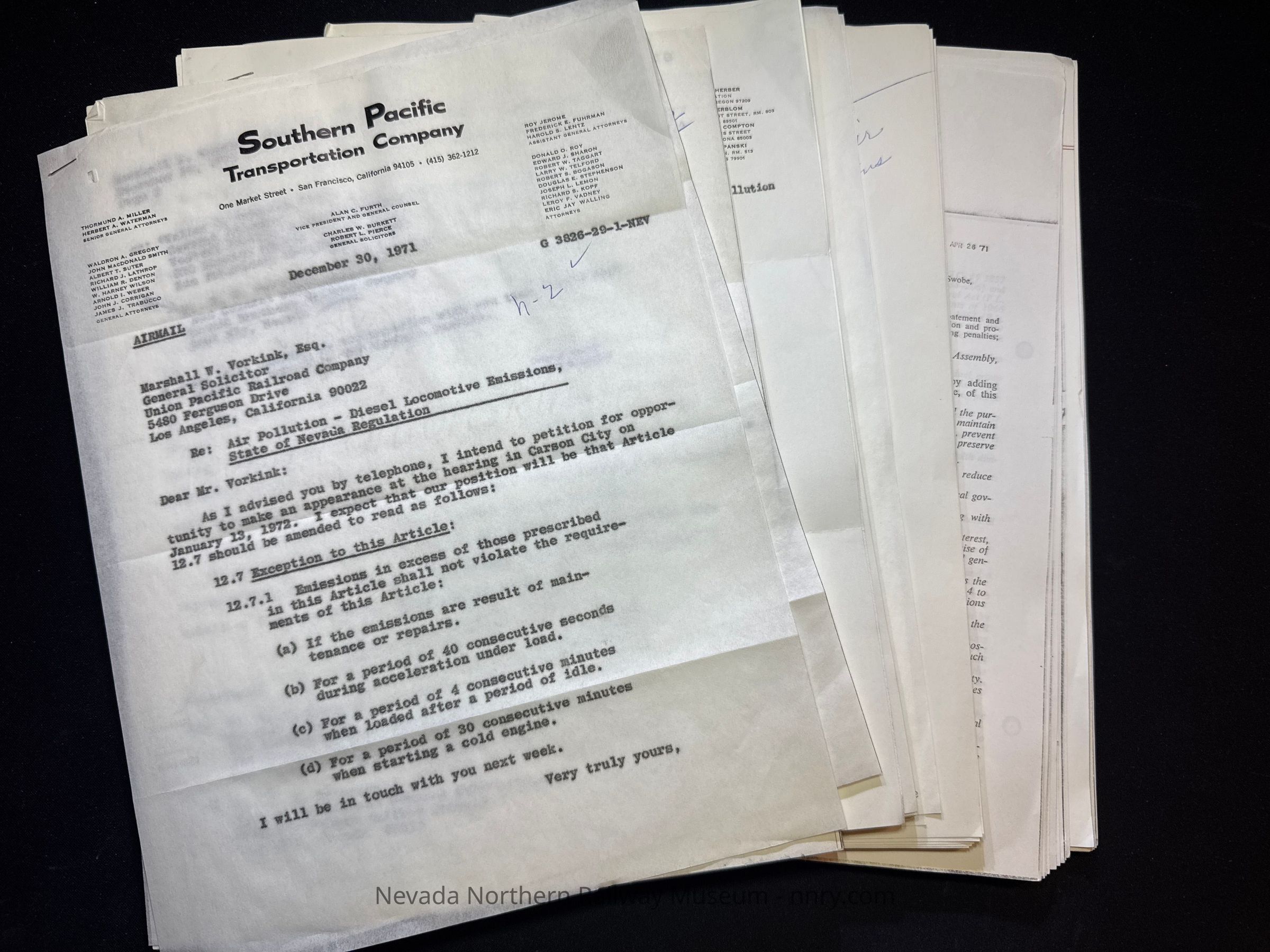 Various correspondence and reports regarding the Nevada State Commission of Environmental Protection related to diesel locomotive emissions, 1971.Creator