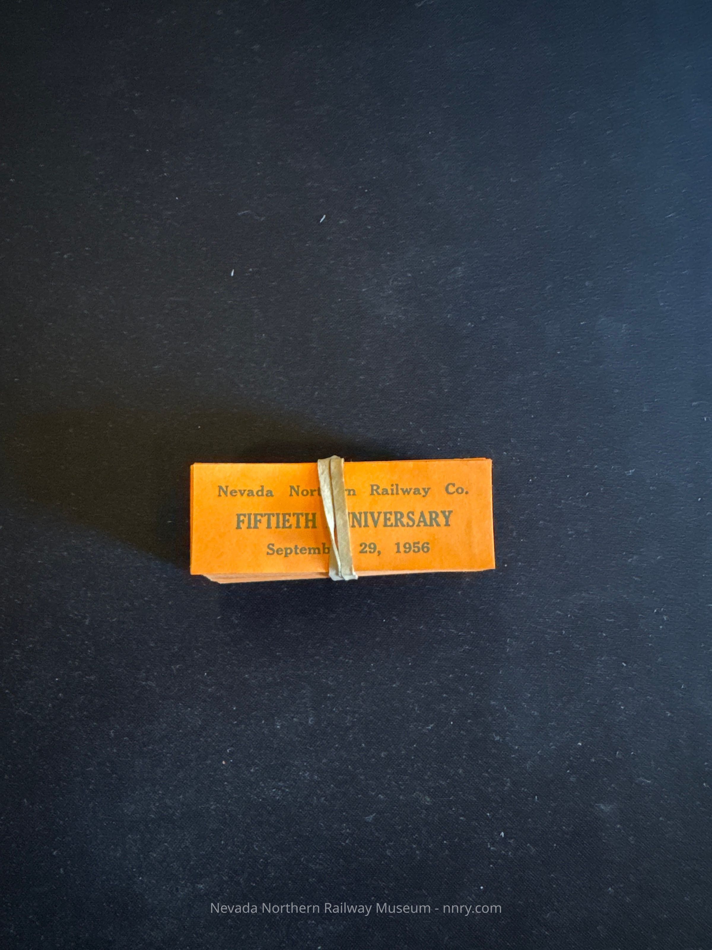 Orange tags that were pasted to the paper hats given out to children for the 50th Anniversary Celebrations.Made/Created