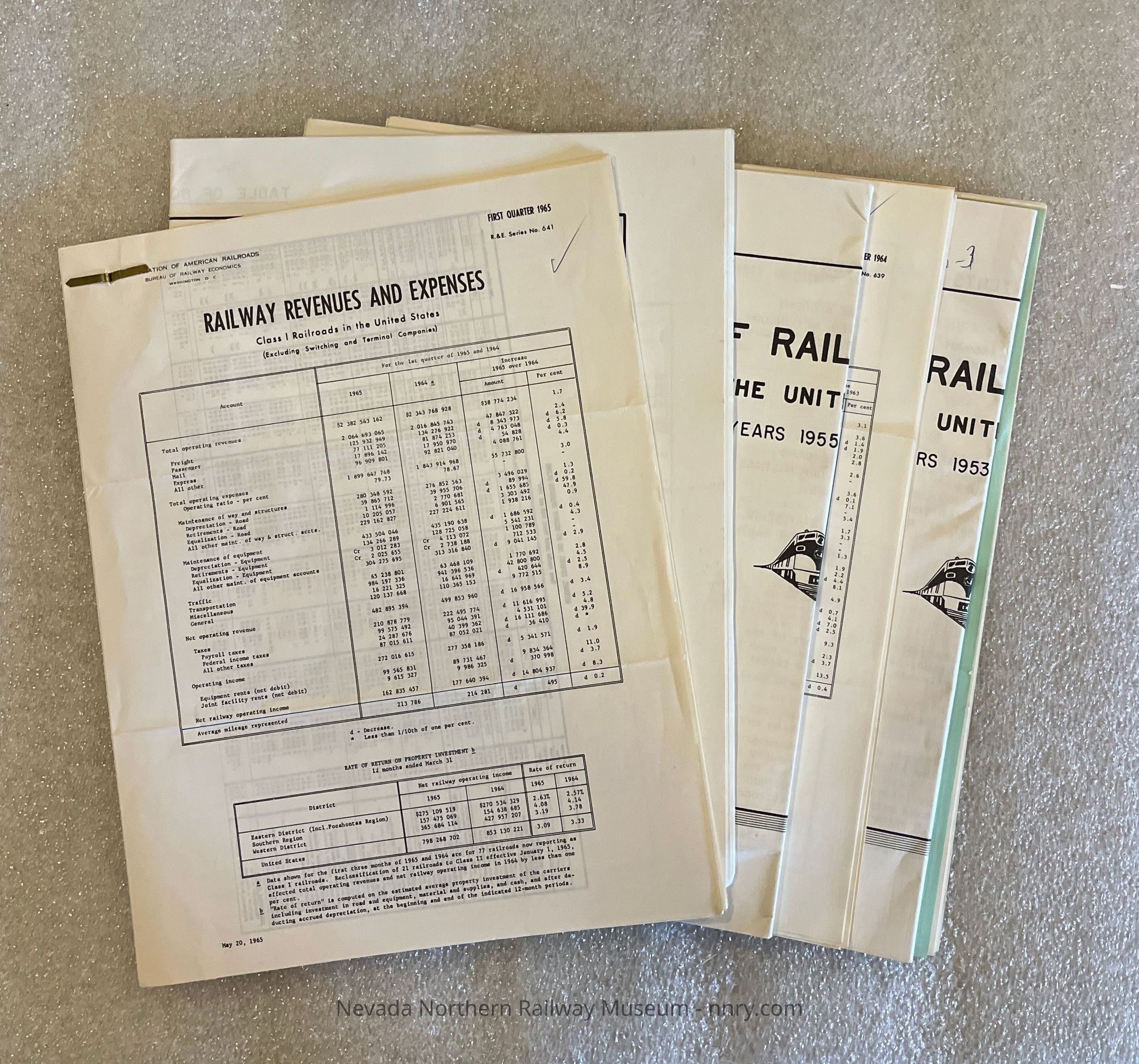 Various materials with statistics and other figures from the AAR Bureau of Railway Economics, 1964-1965.