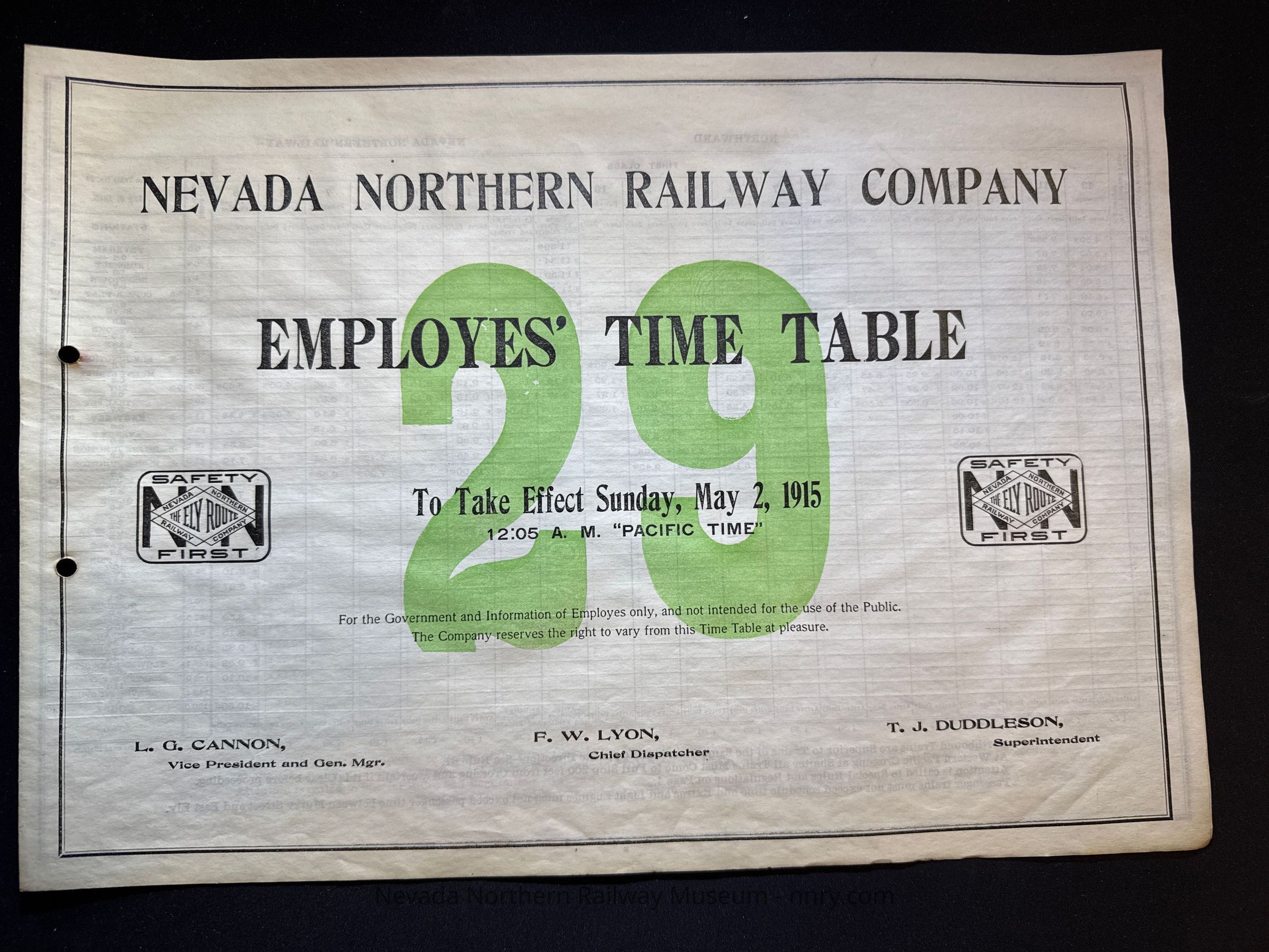 Nevada Northern Railway timetable no. 29, May 2, 1915.