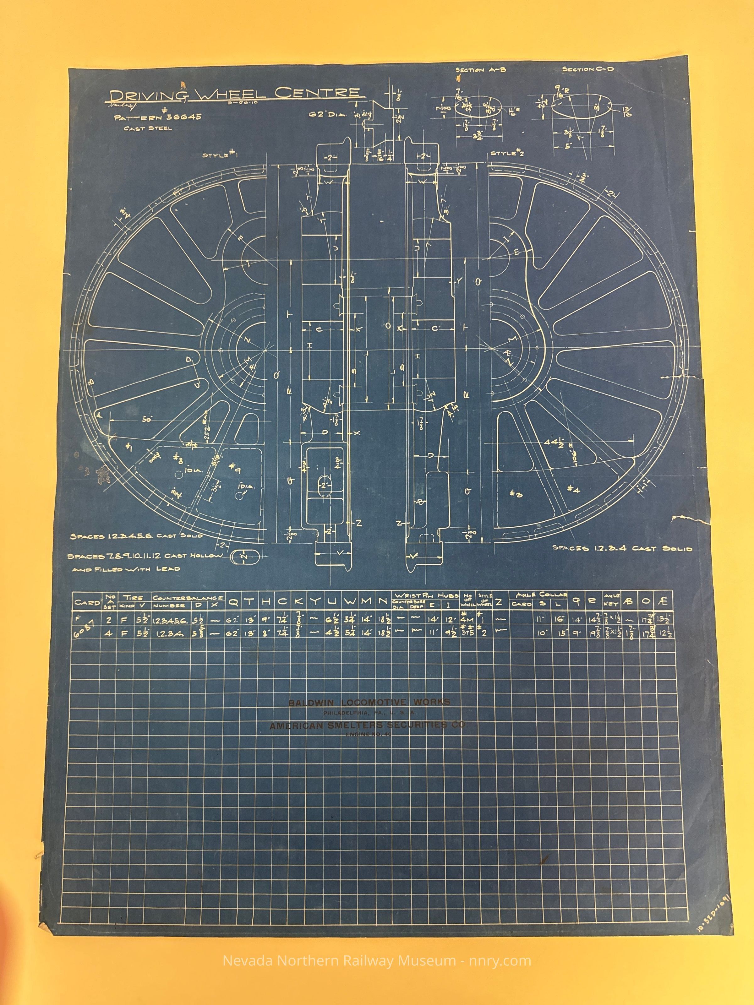 Blueprint for the driving wheel center on locomotive #40, May 26, 1910.