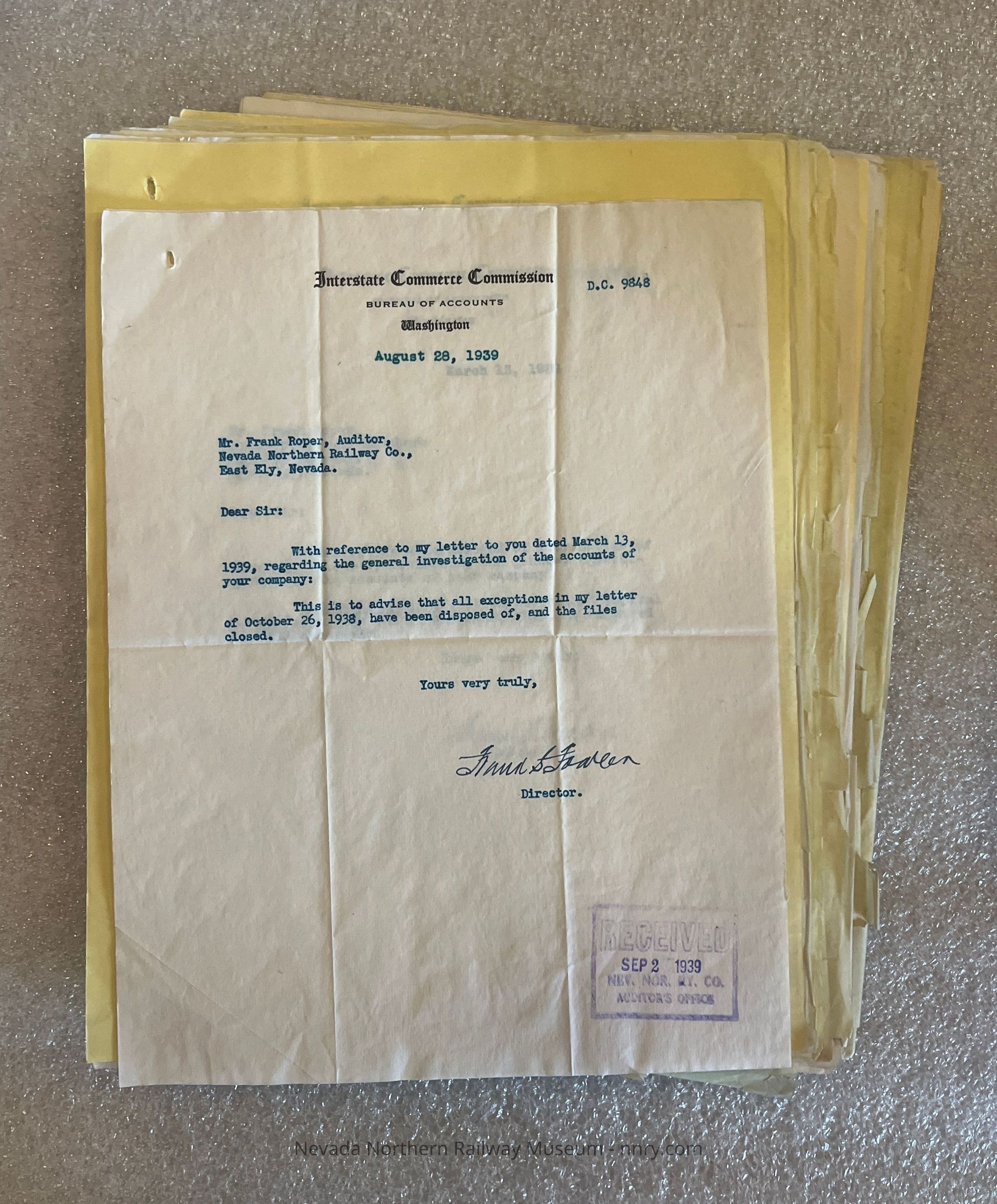 Various correspondence relating to matters with the ICC, 1938-1939.