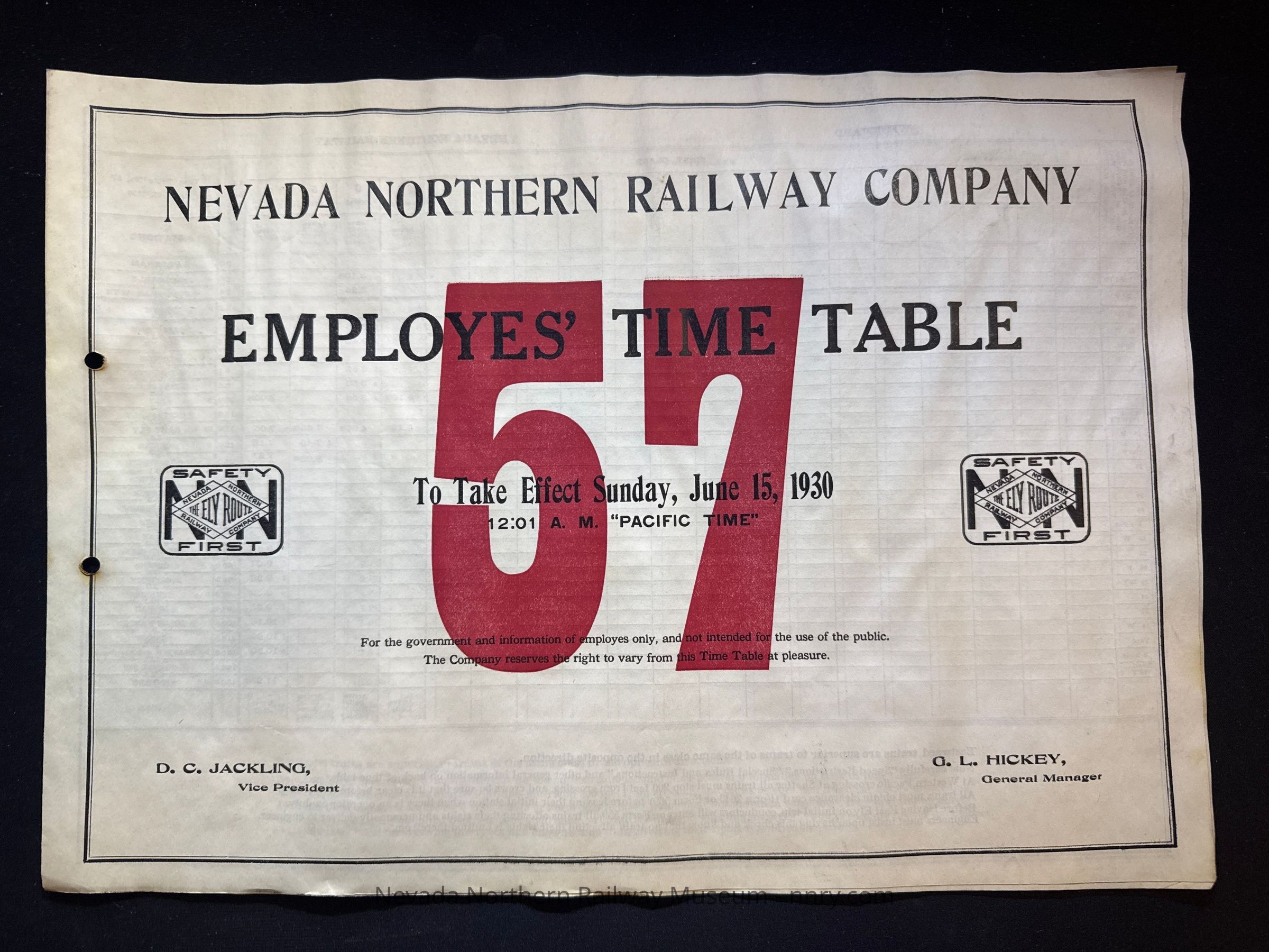 Nevada Northern Railway timetable no. 57, June 15, 1930.