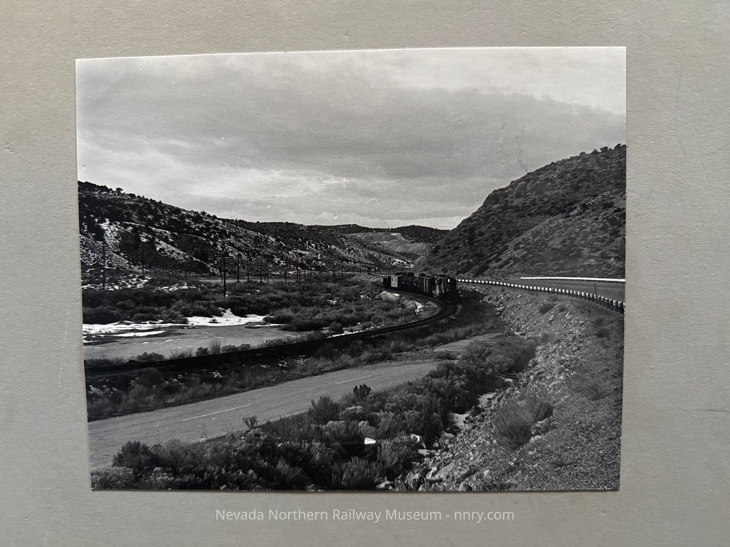 Locomotive #401 with a general freight train in Robinson Canyon. Believed to have hung in the general offices.