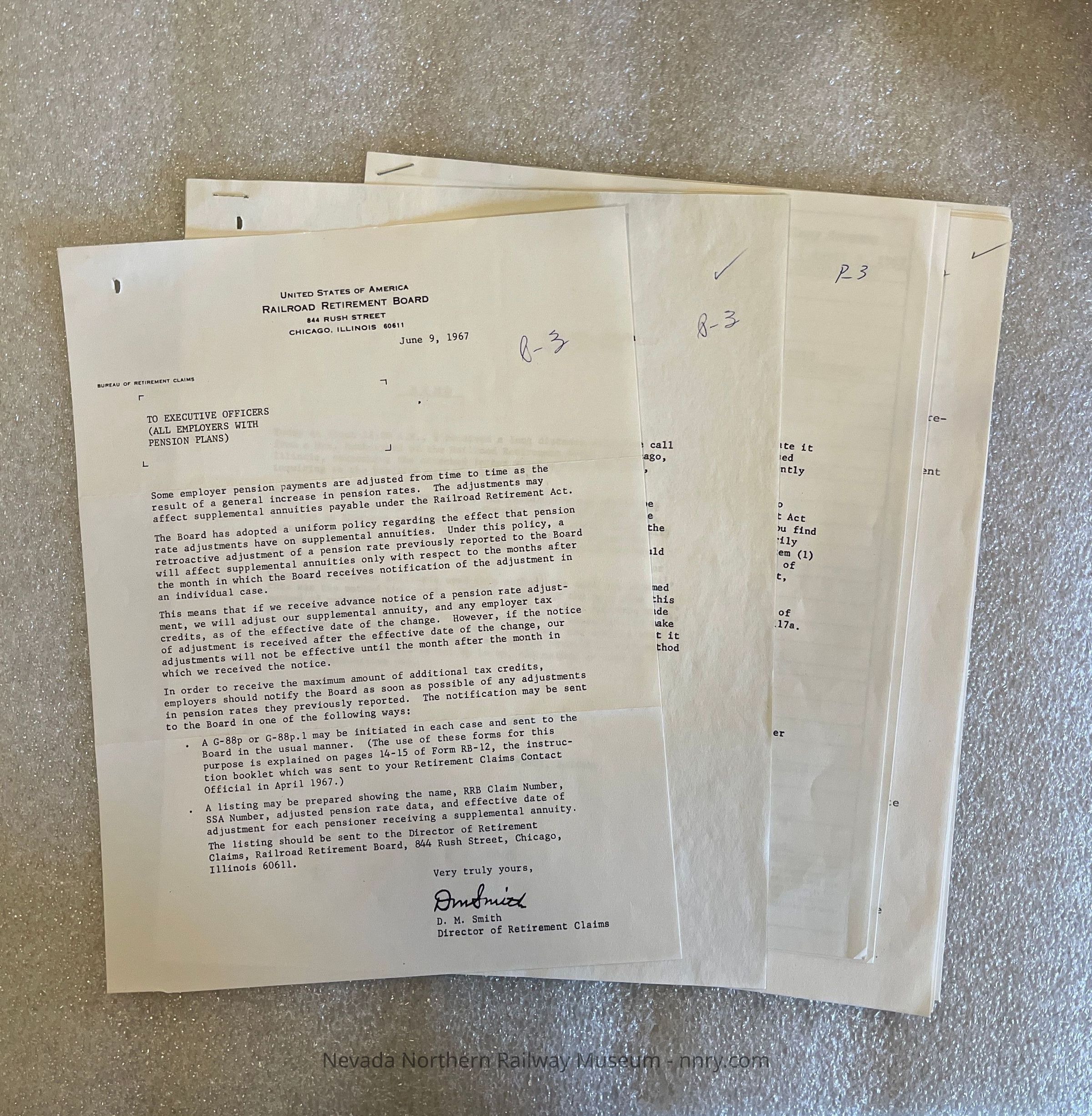 Correspondence regarding pensions for employees that fell under Railroad Retirement, 1966-1967.
