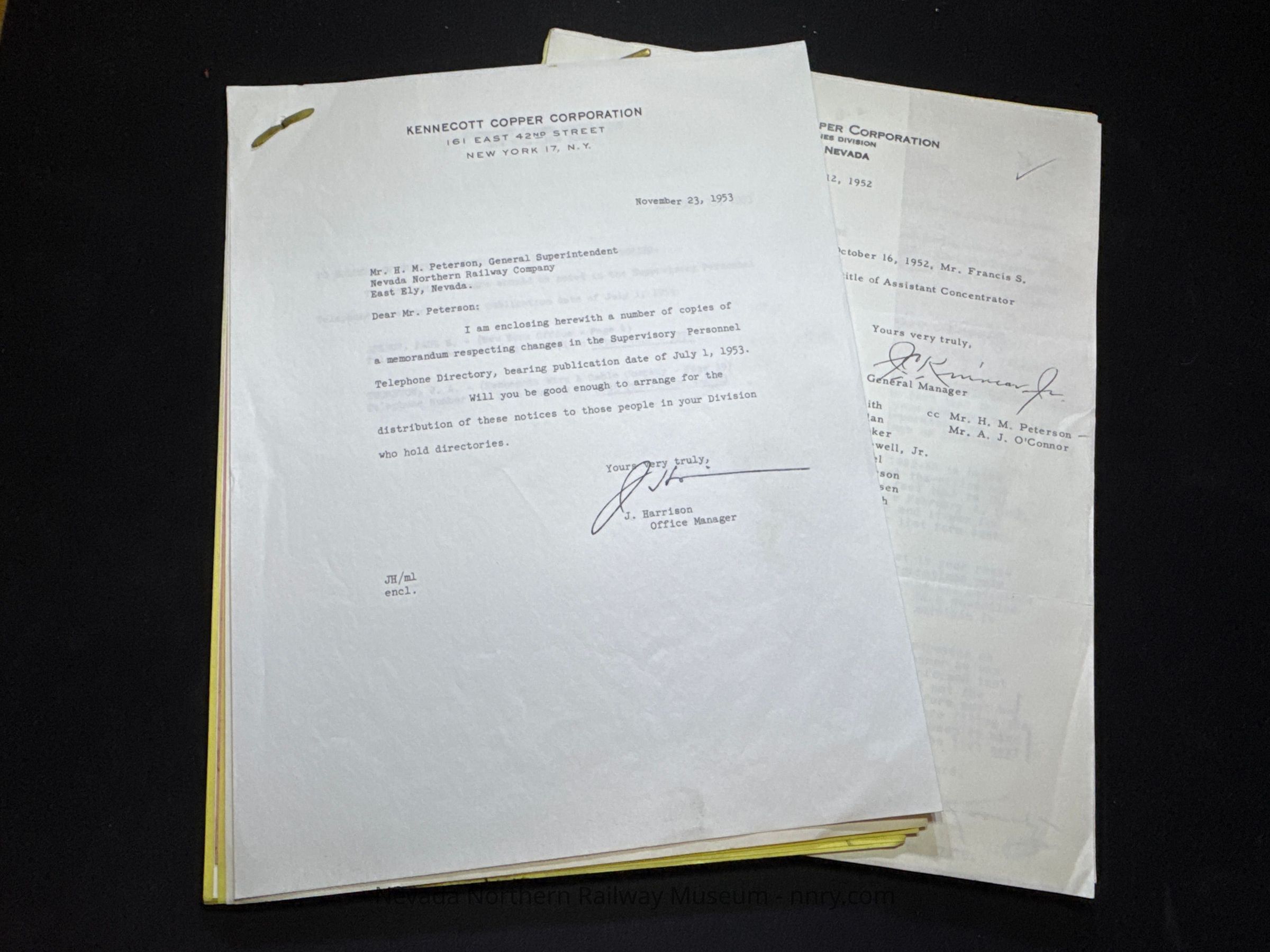 Various correspondence regarding the officers of KCC and NNRy, 1952-1953.