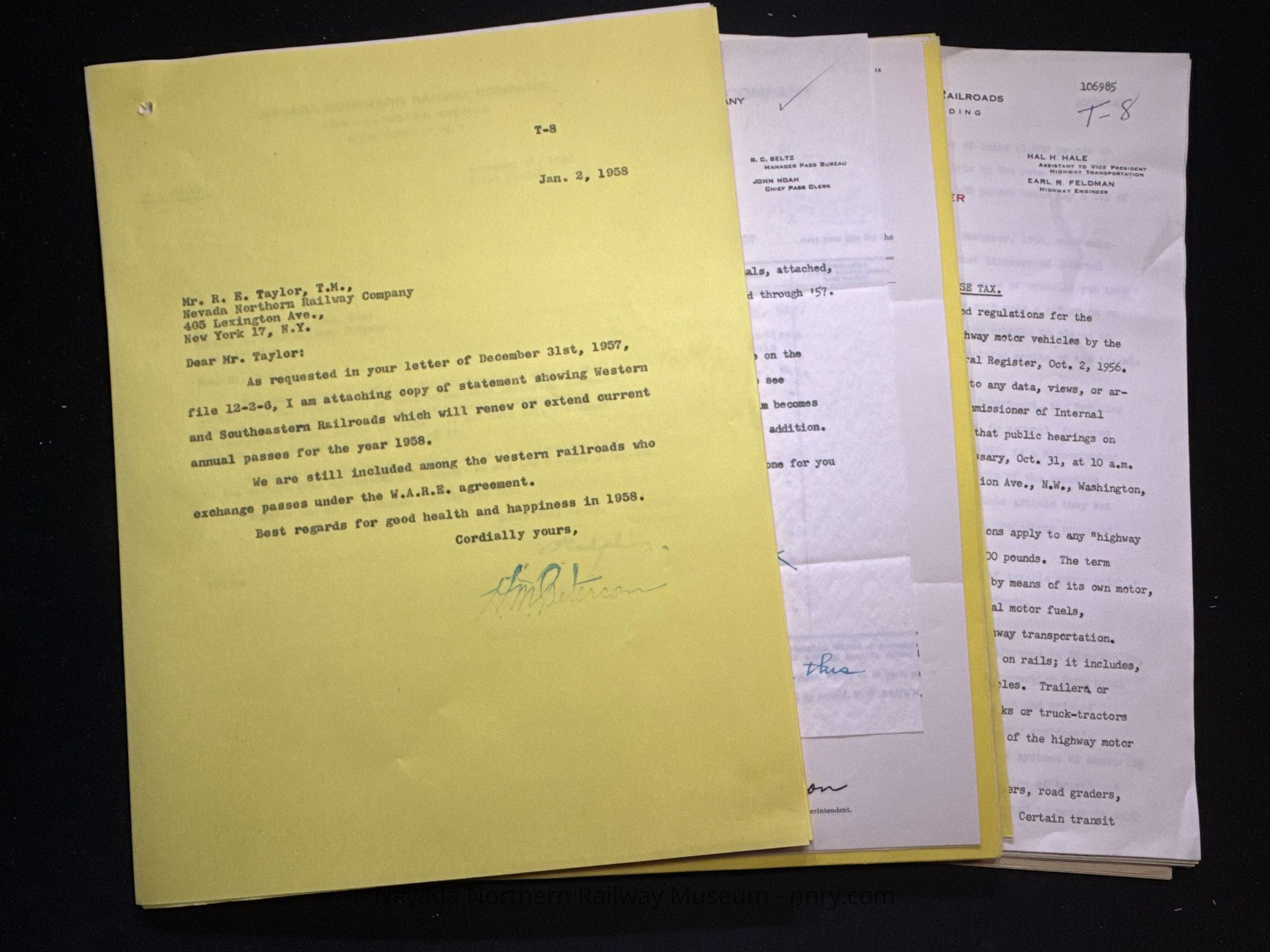 Various correspondence related to annual passes issued by other railroads, 1956-1957.Creator