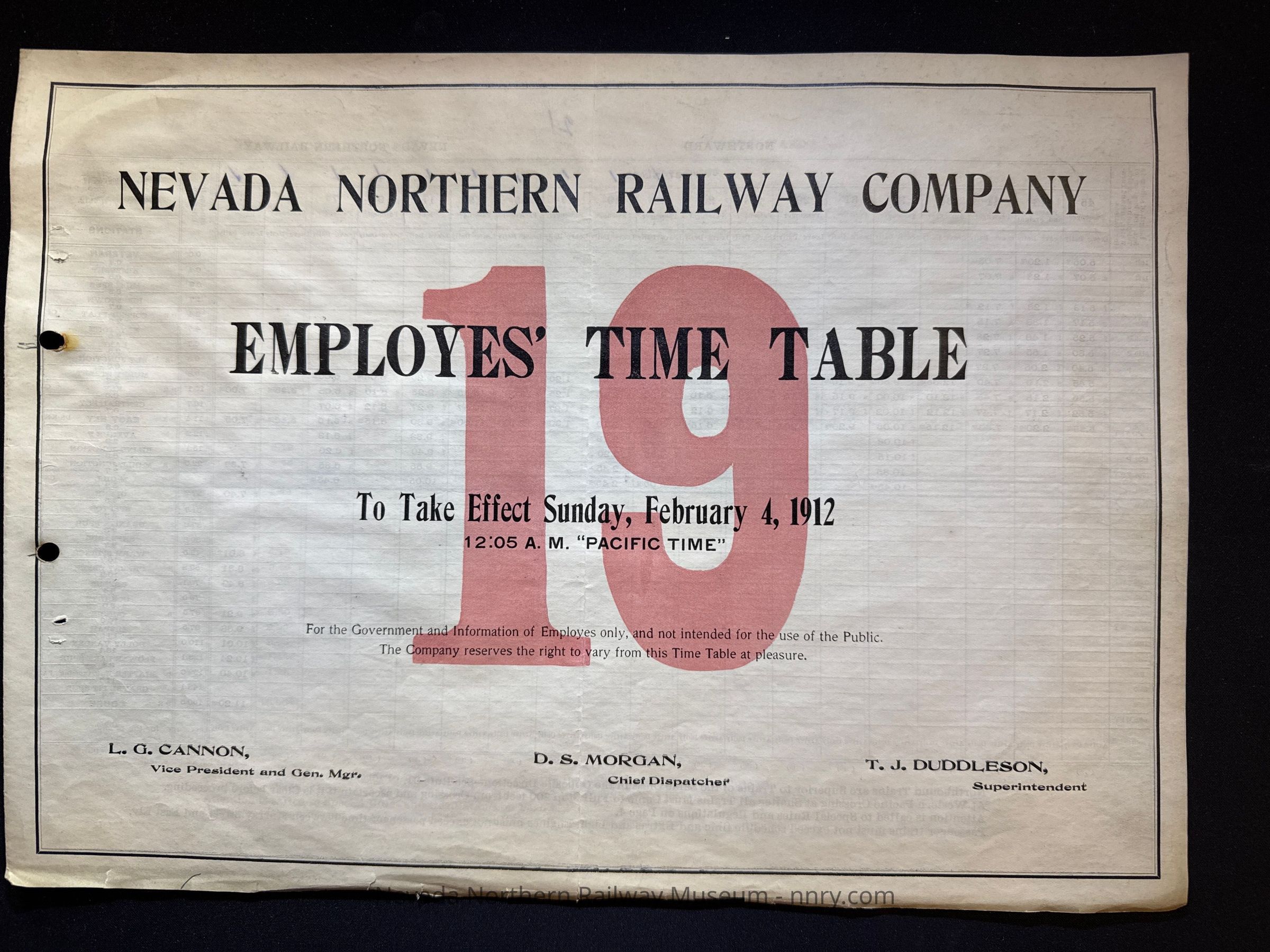 Nevada Northern Railway timetable no. 19, February 4, 1912.