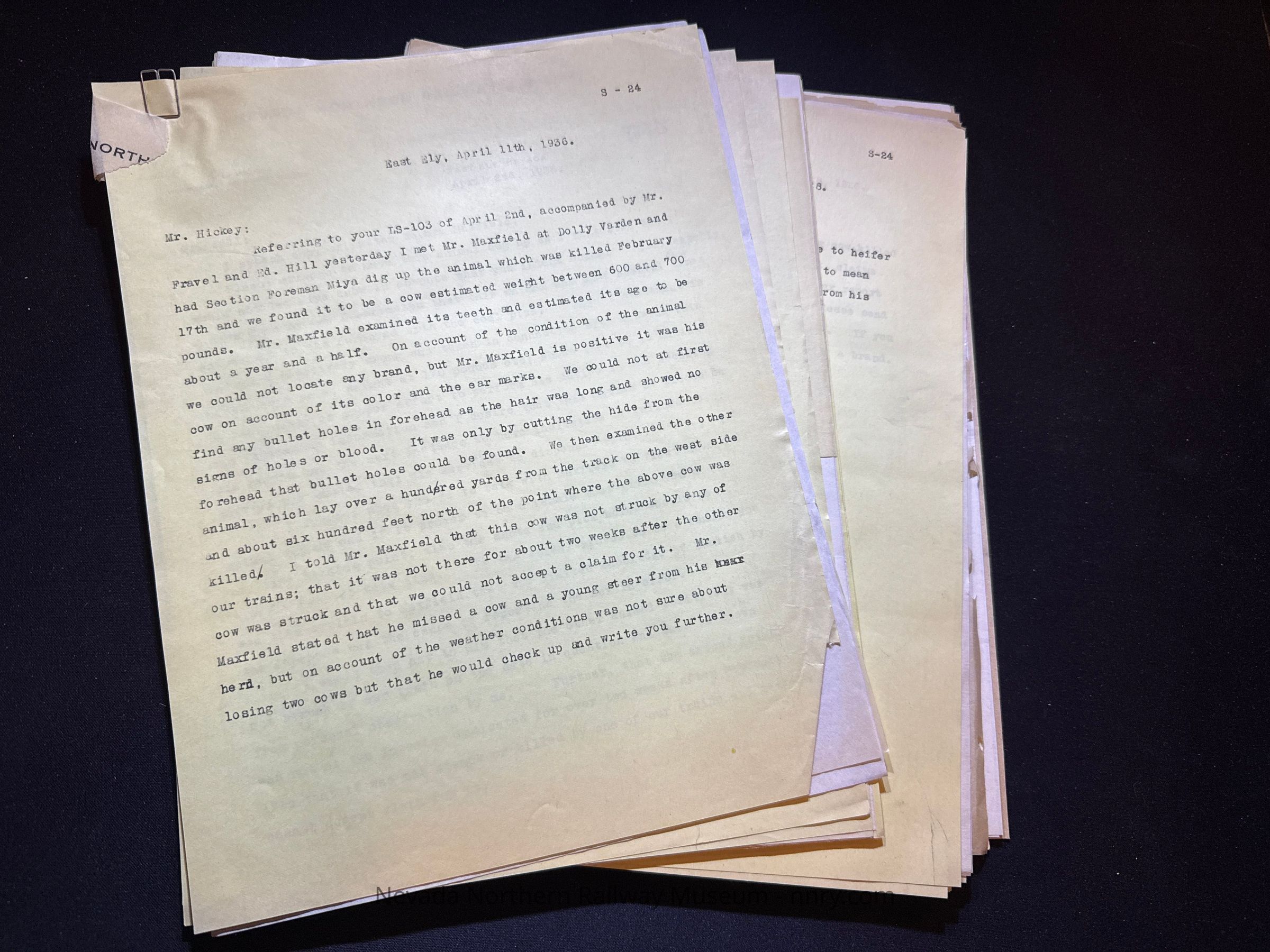Reports and correspondence regarding livestock killed, 1923-1936.