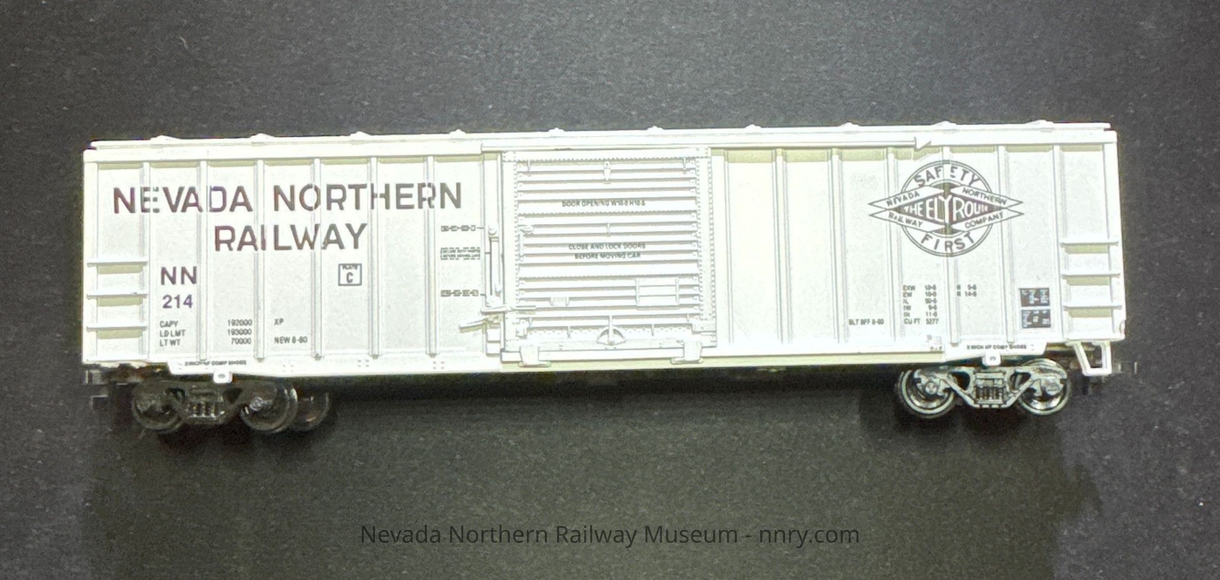 HO scale NNRy pool boxcar #214 with Safety First logo.