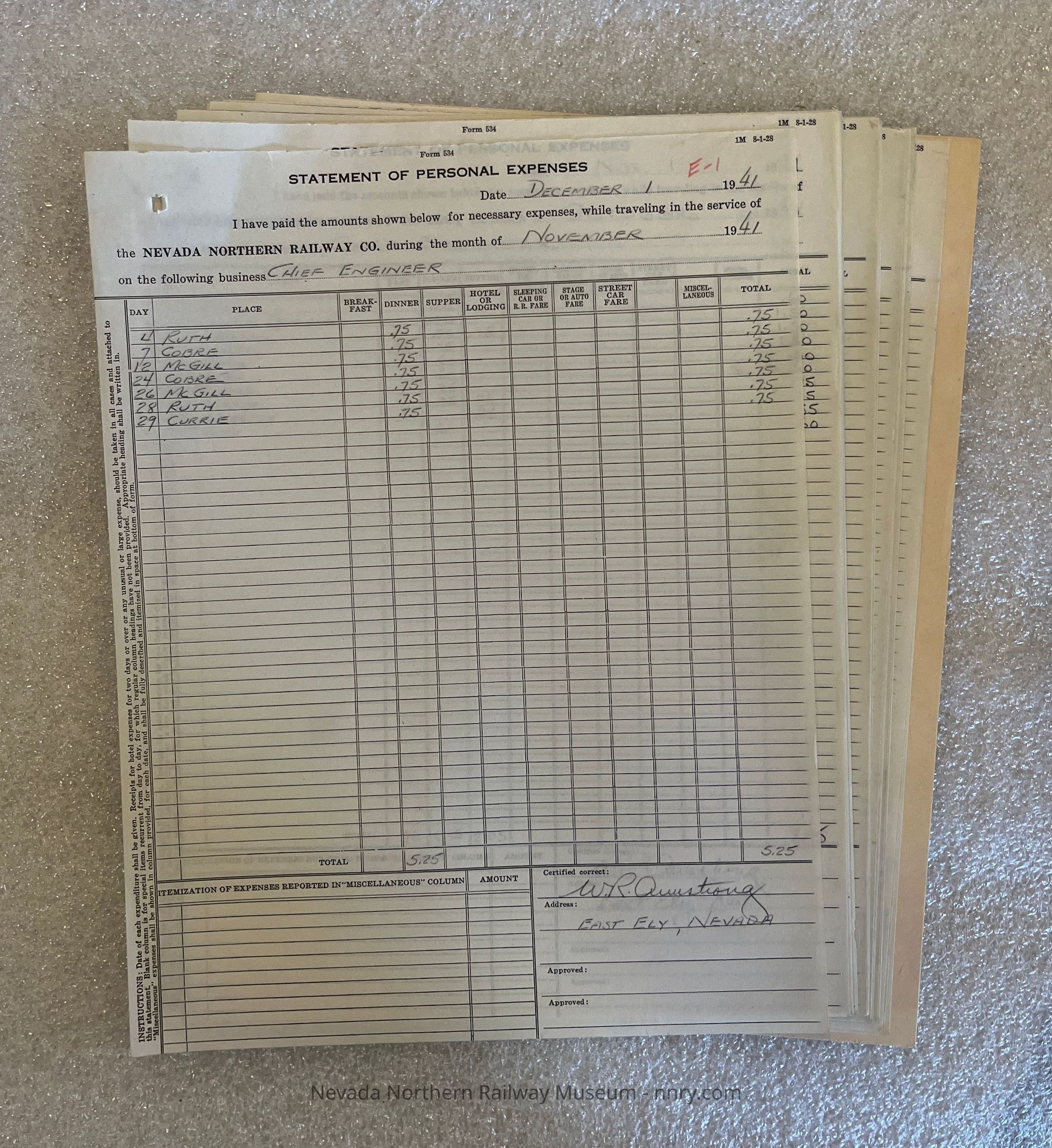 Reports of personal expenses from W.R. Armstrong, 1938-1941.