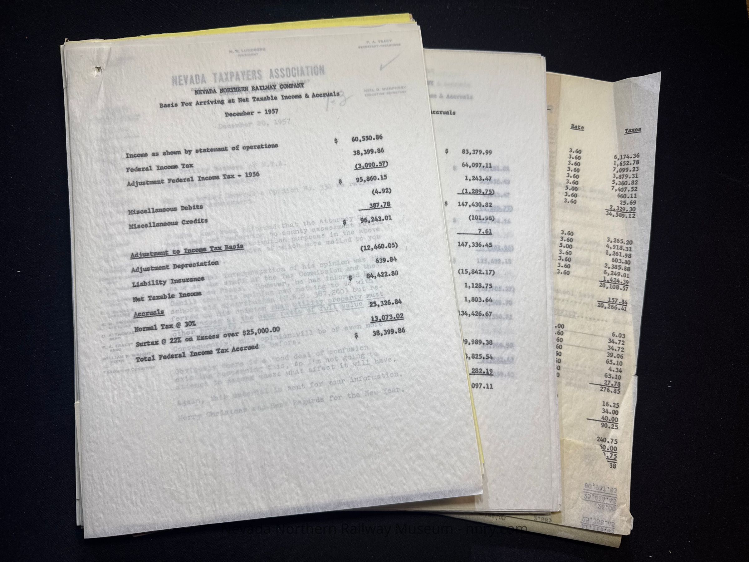Various correspondence related to Federal, State and County taxes, 1956-1957.
