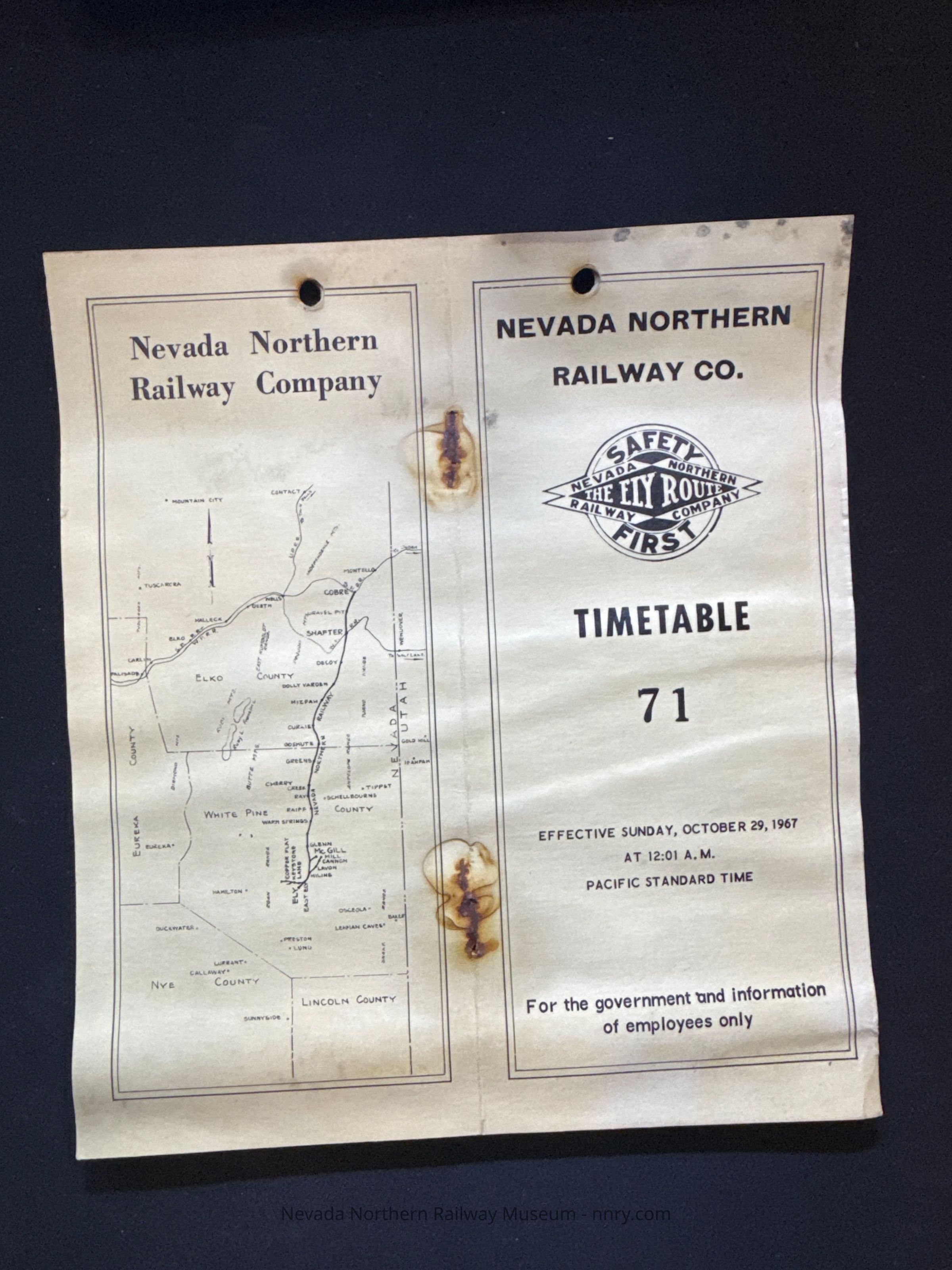 Nevada Northern Railway timetable no. 71, October 29, 1967