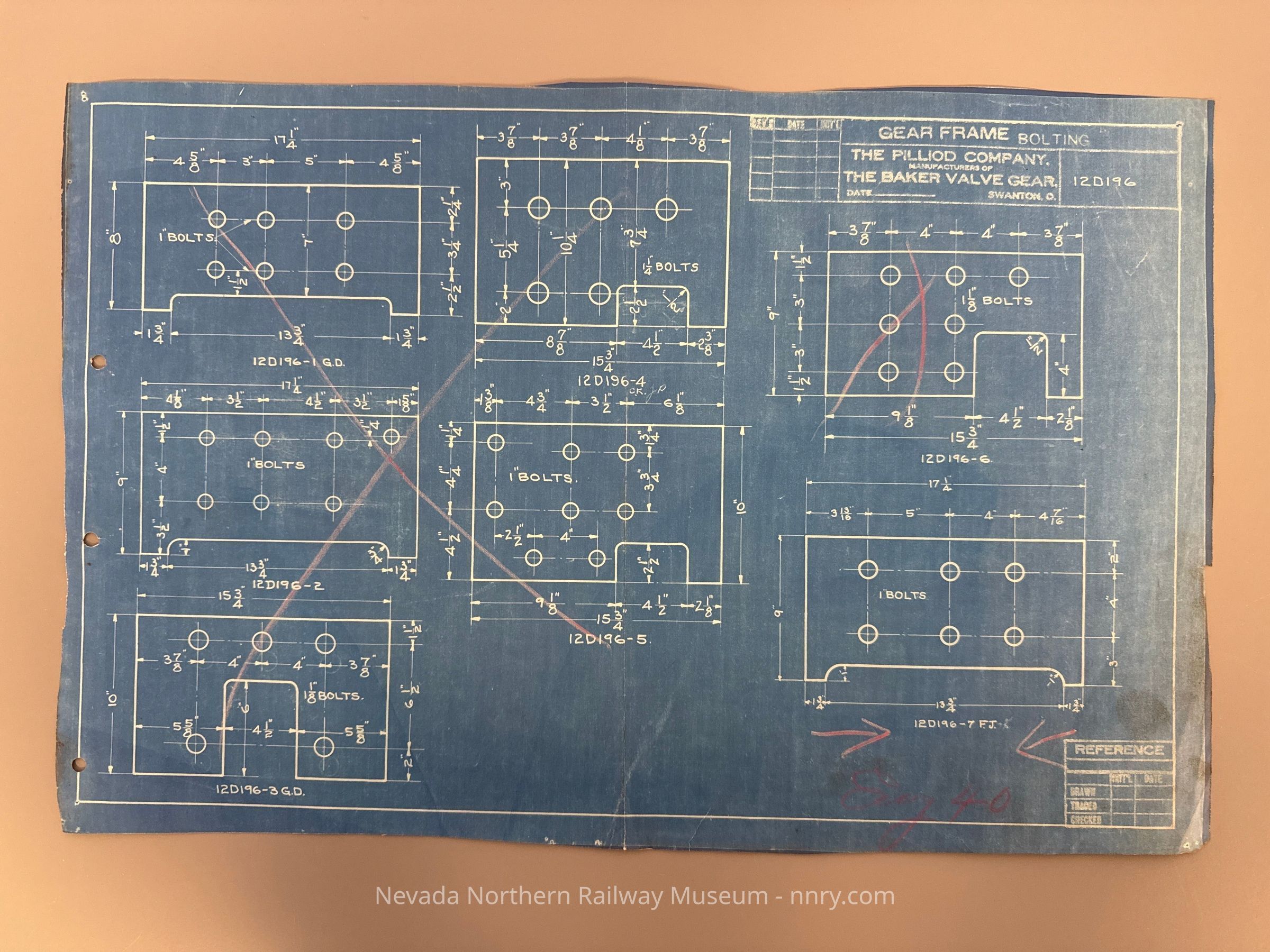 Blueprint for the gear frame bolting of the Baker valve gear on locomotive #40, May 29, 1917.