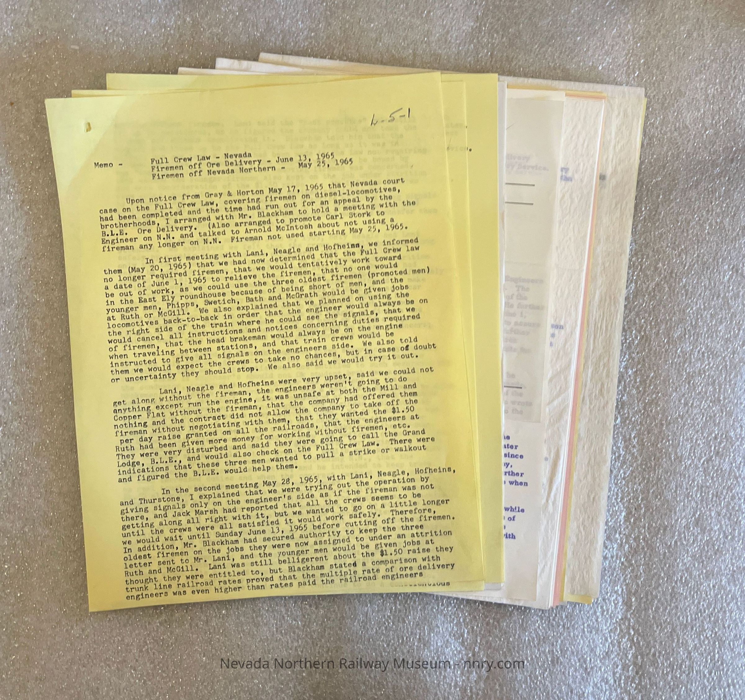Correspondence and other materials related to the change in the full crew law, 1964-1965.