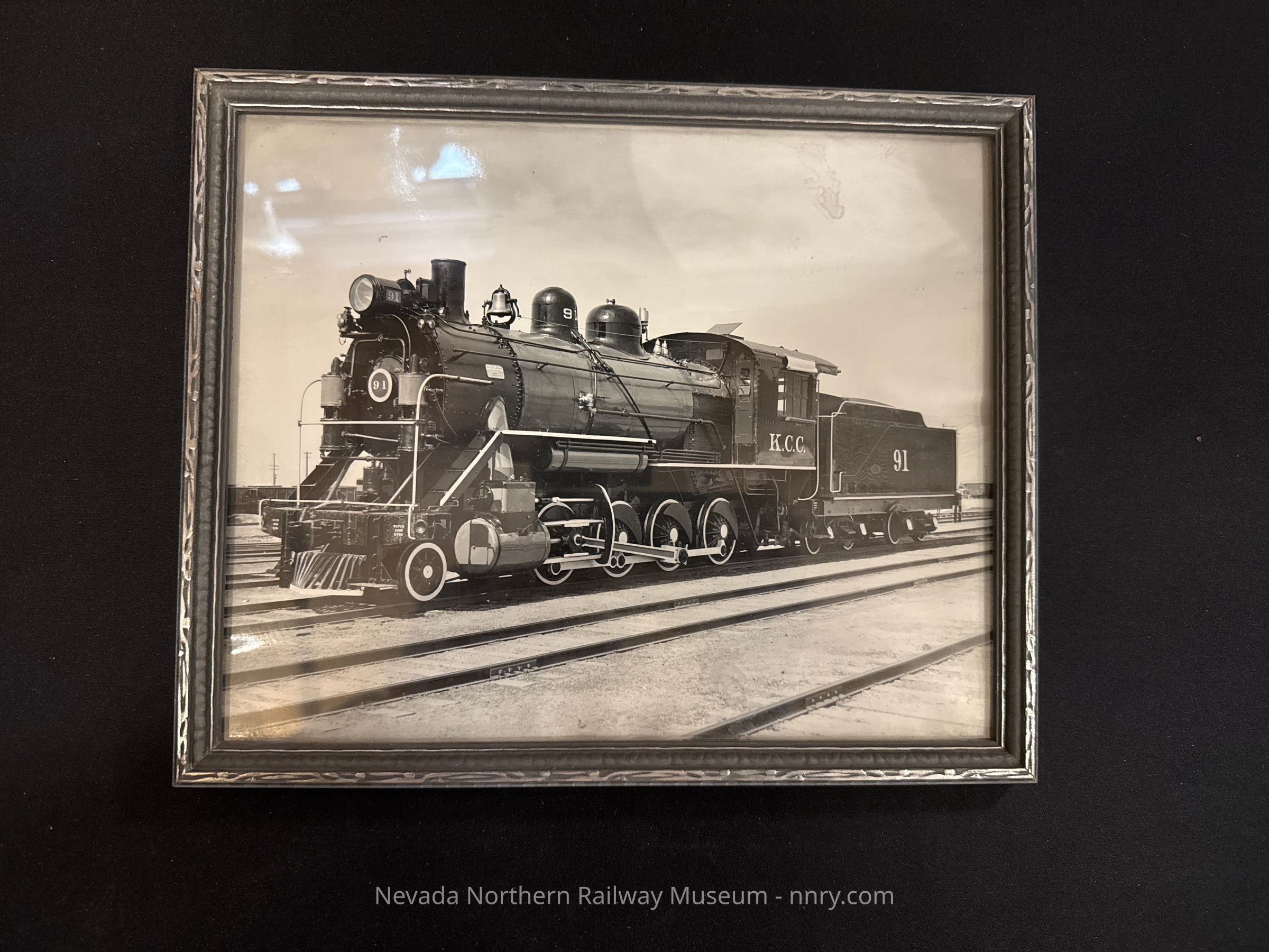 Locomotive #91 in the East Ely Yard, lettered for KCC, in silver frame, once hung in the general offices.Photograph Details