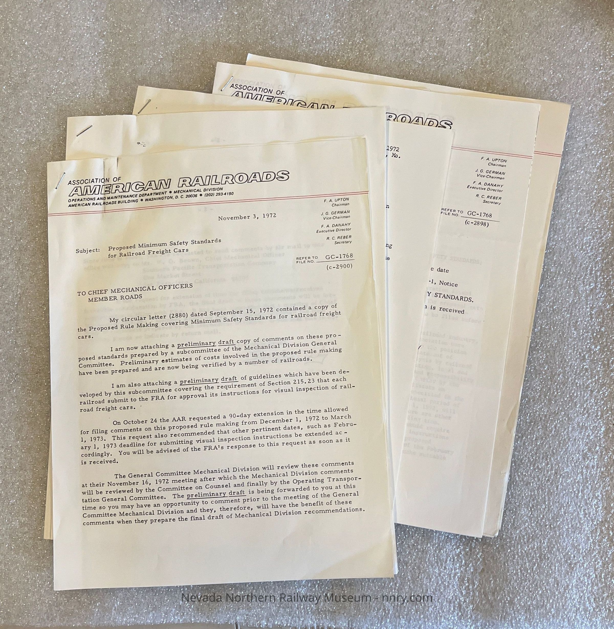 Various correspondence from the AAR on proposed rules for minimum safety standards for railroad freight cars, 1972.Creator