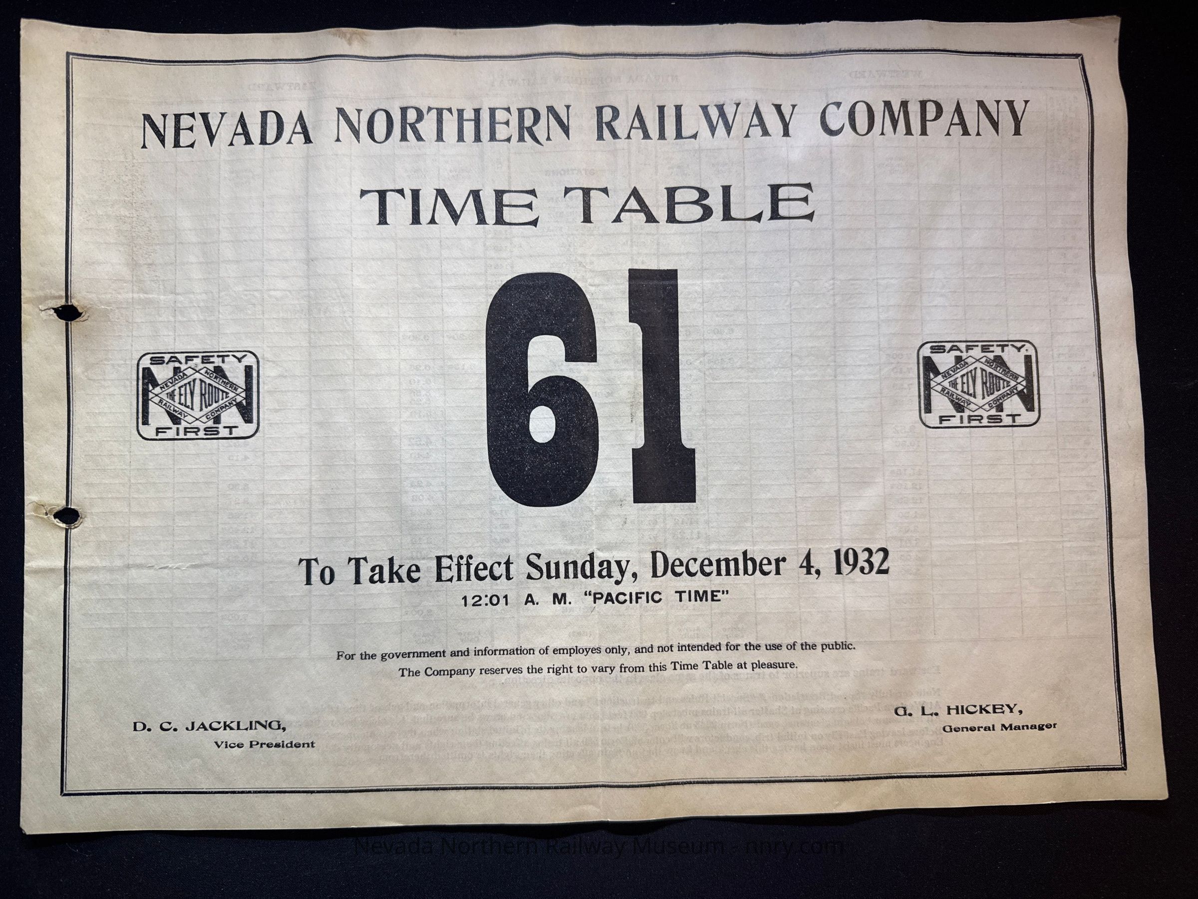Nevada Northern Railway timetable no. 61, December 4, 1932.
