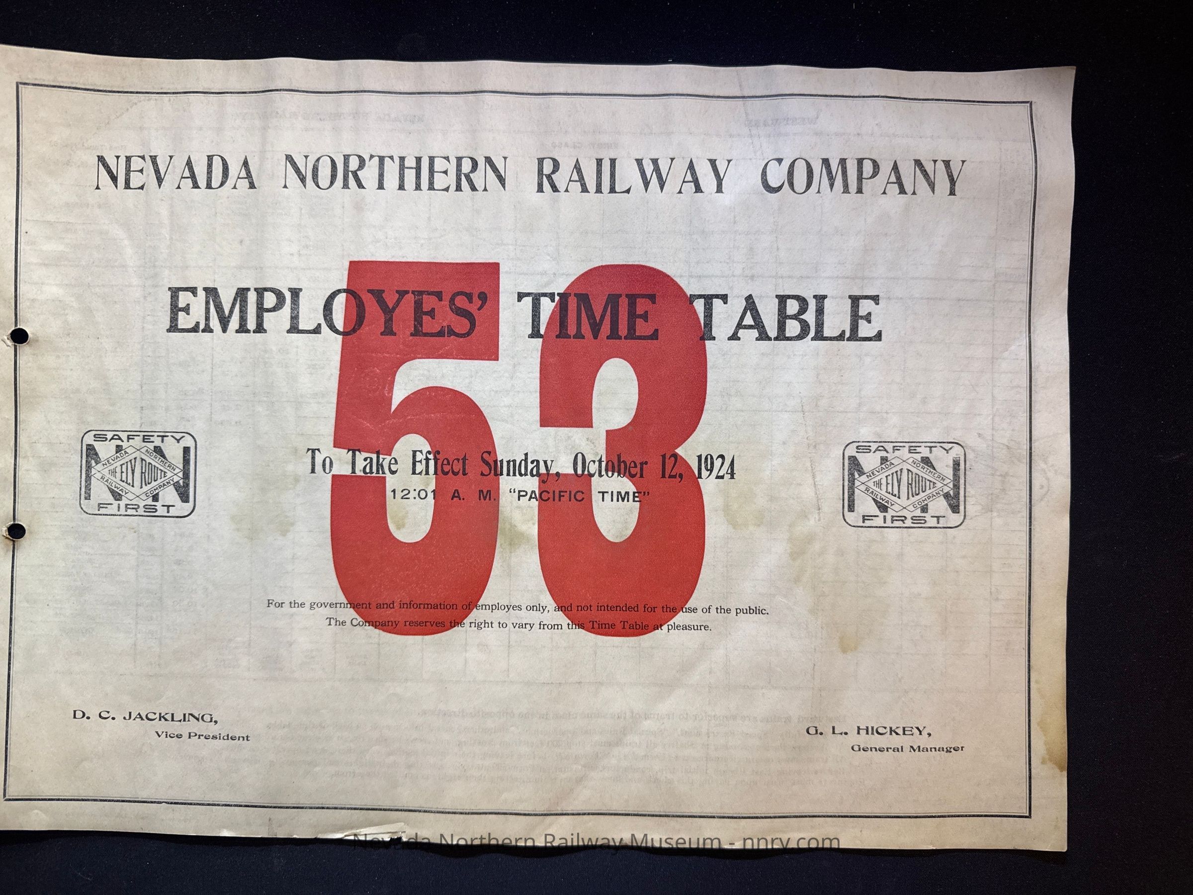 Nevada Northern Railway timetable no. 53, October 12, 1924.