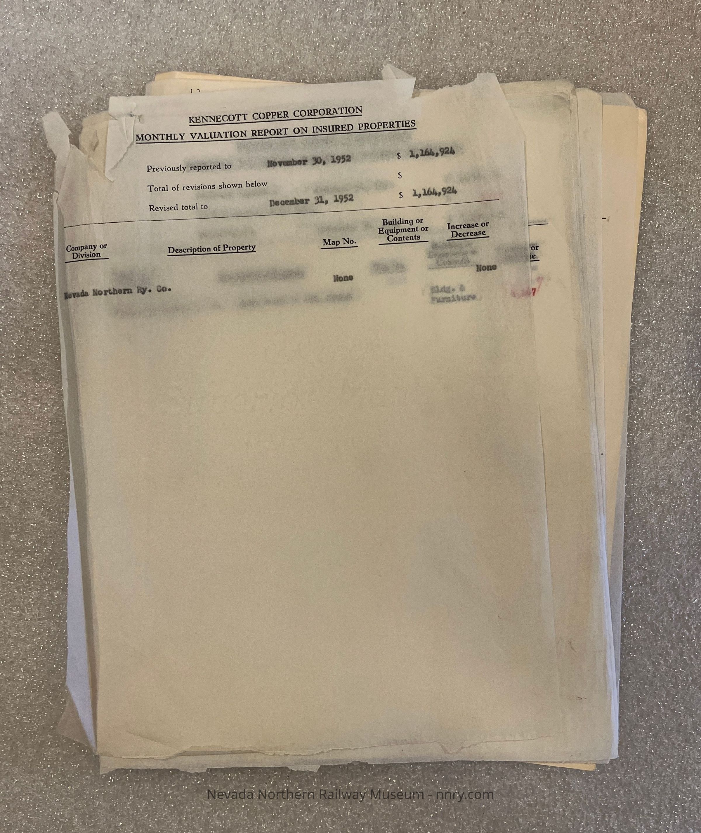 Monthly Valuation Reports - 1952Entry/Object ID