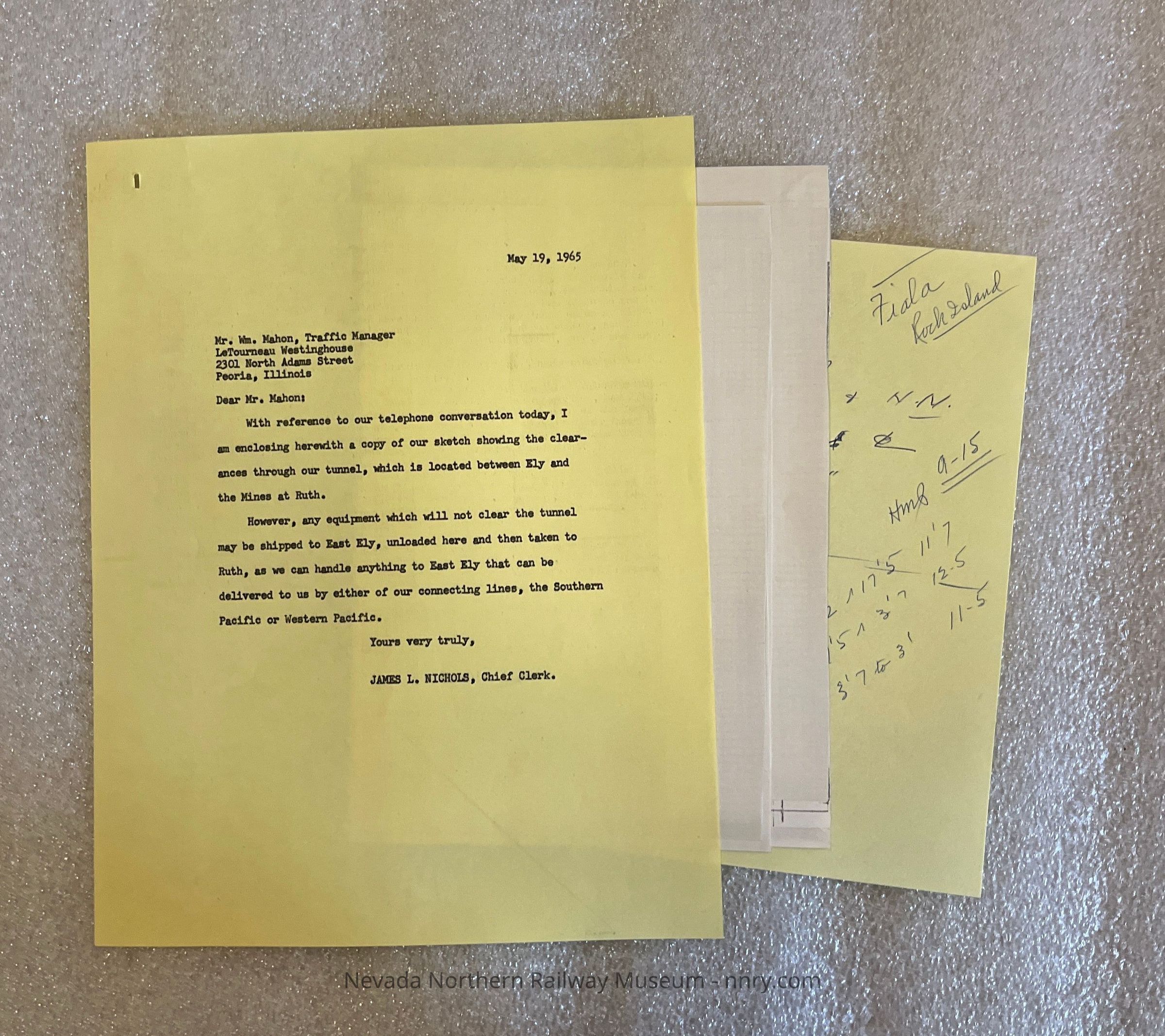 Correspondence, diagrams and notes on line clearances including that of Tunnel No. 1, May 1965.