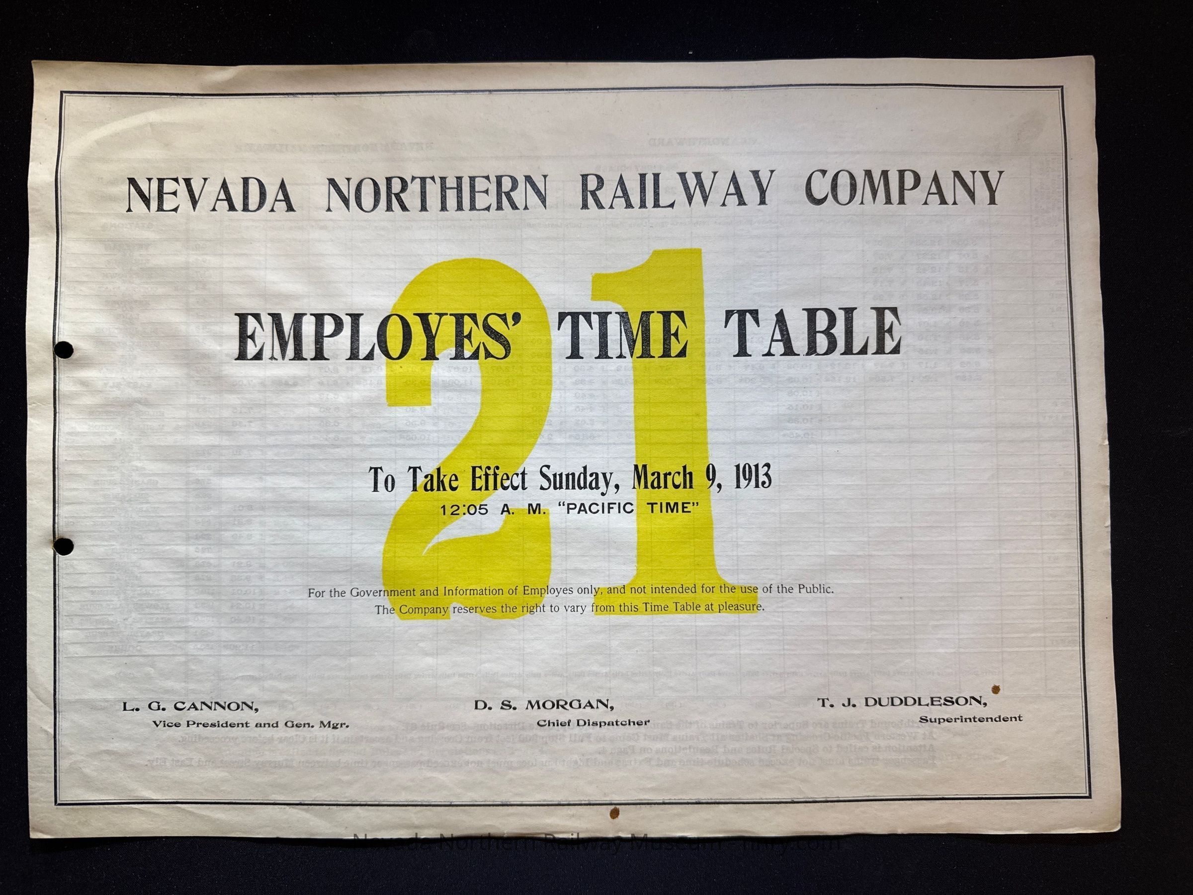 Nevada Northern Railway timetable no. 21, March 9, 1913.