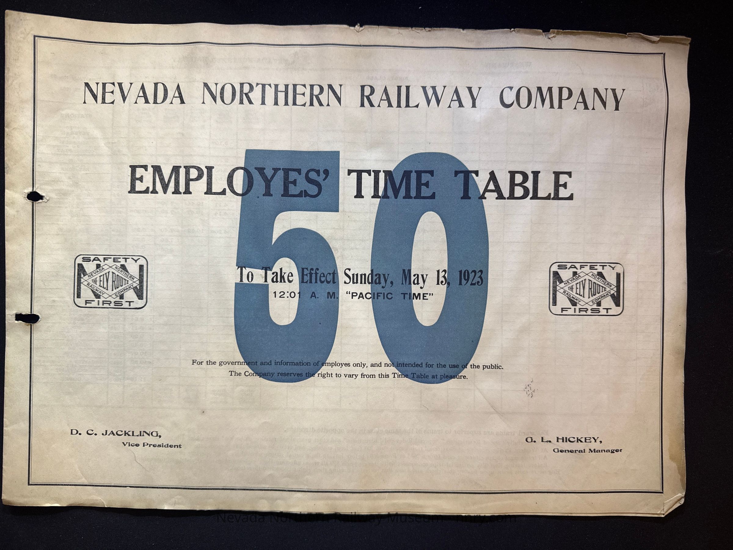 Nevada Northern Railway timetable no. 50, May 13, 1923.