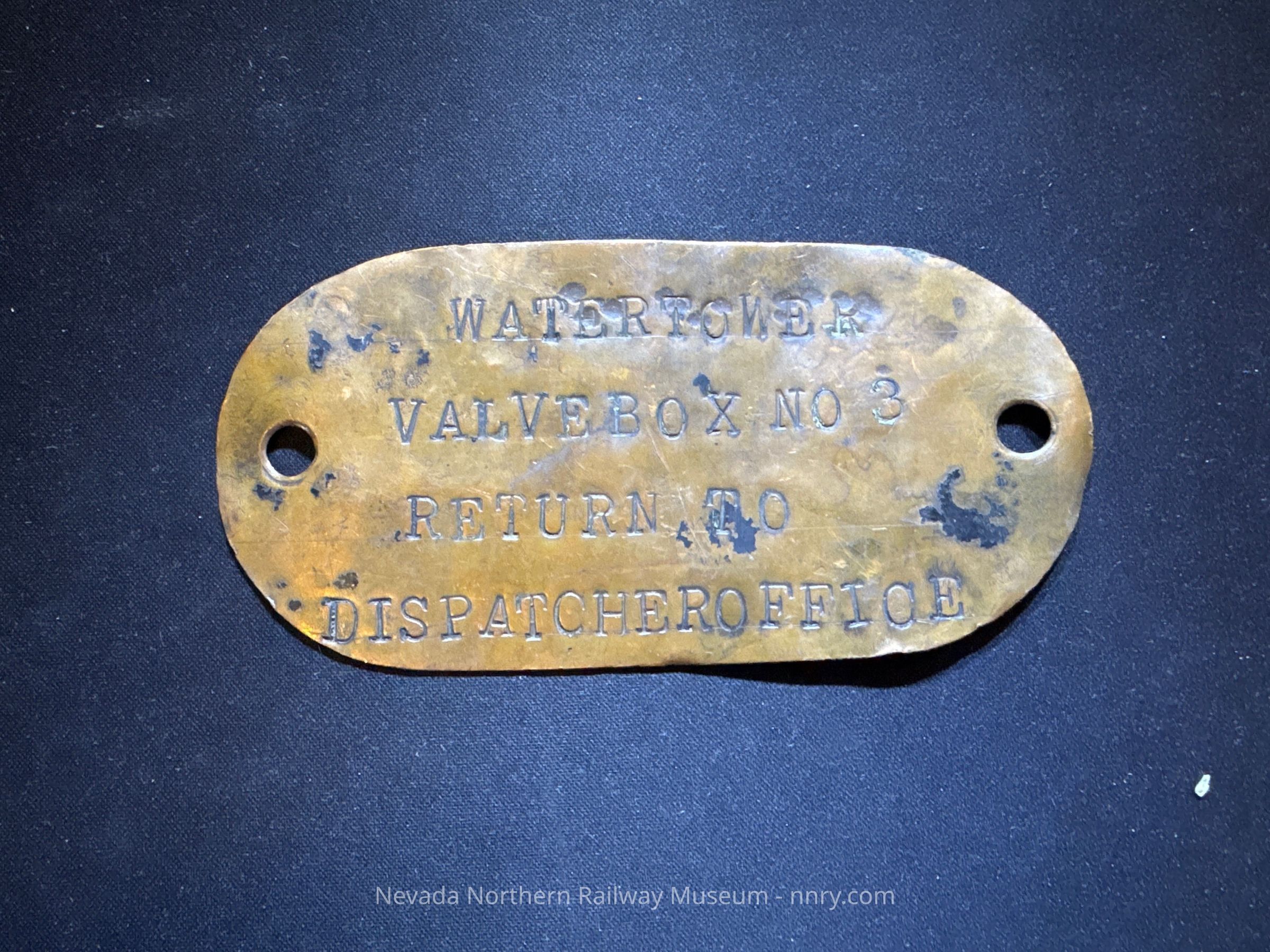 NNRy copper key tag to the water tower valve box no. 3 kept in the dispatchers' office.Category