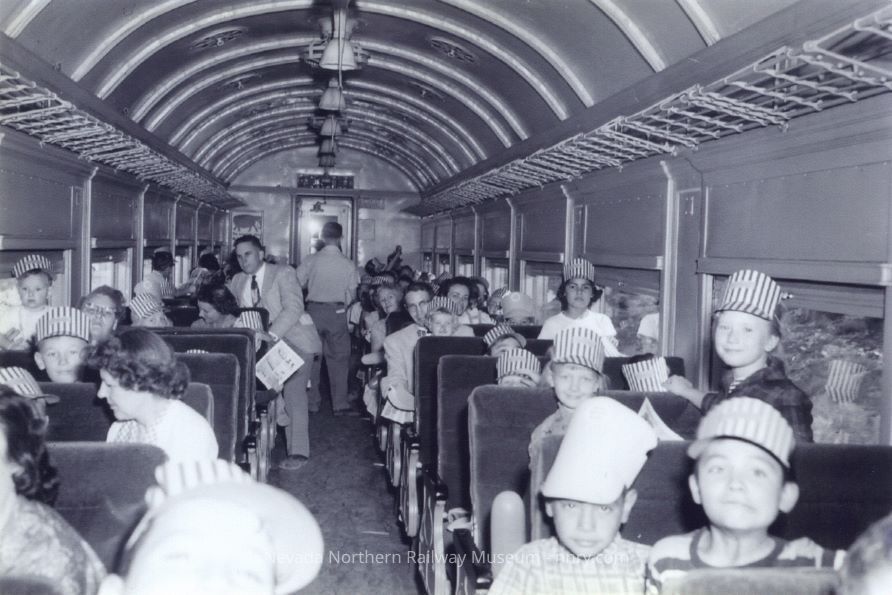 Passengers, mostly children, in one of the leased coaches on the 50th Anniversary Train, September 1956.