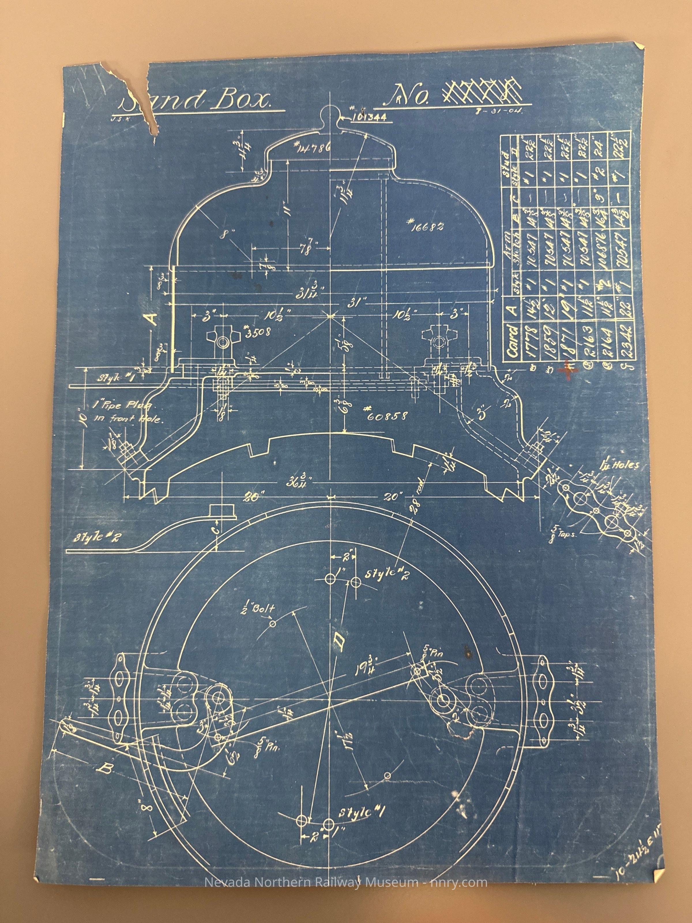 Blueprint for the sand box on locomotive #40, September 9, 1909.
