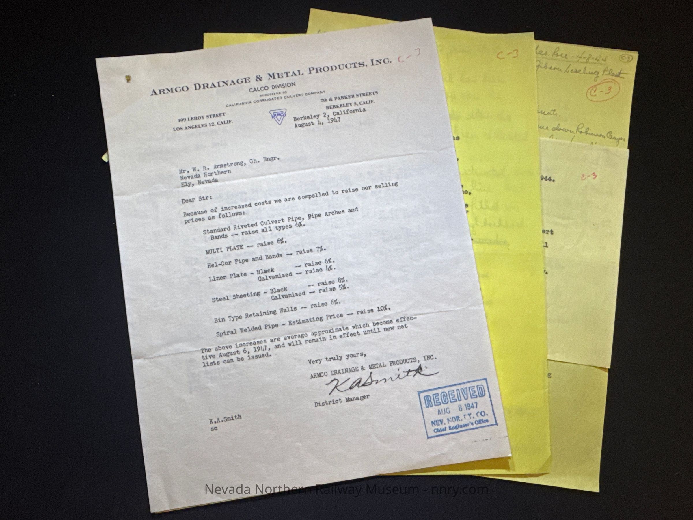 Various correspondence regarding culverts, 1944-1947