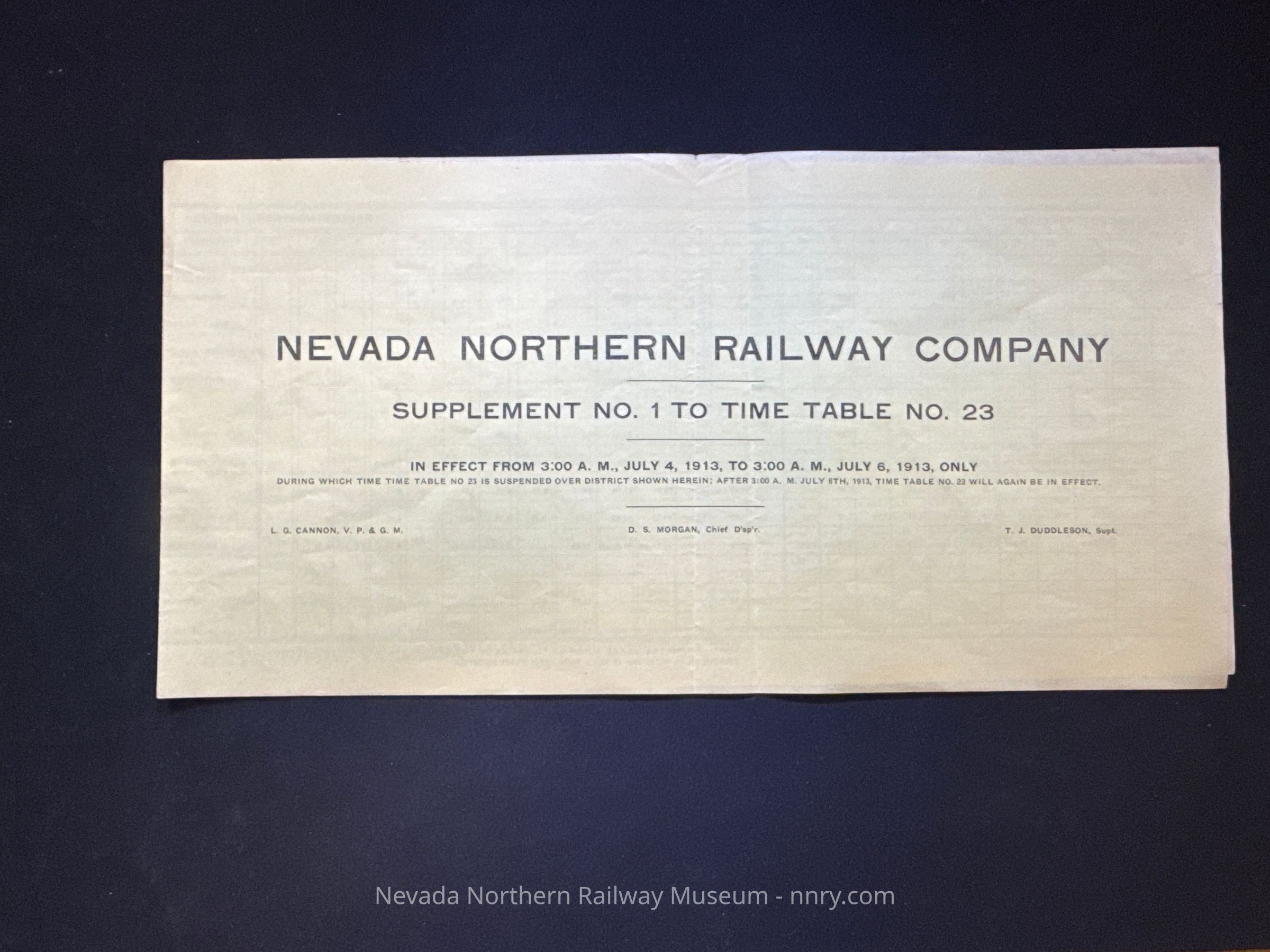 Nevada Northern Railway timetable no. 23 supplement, July 6, 1913.