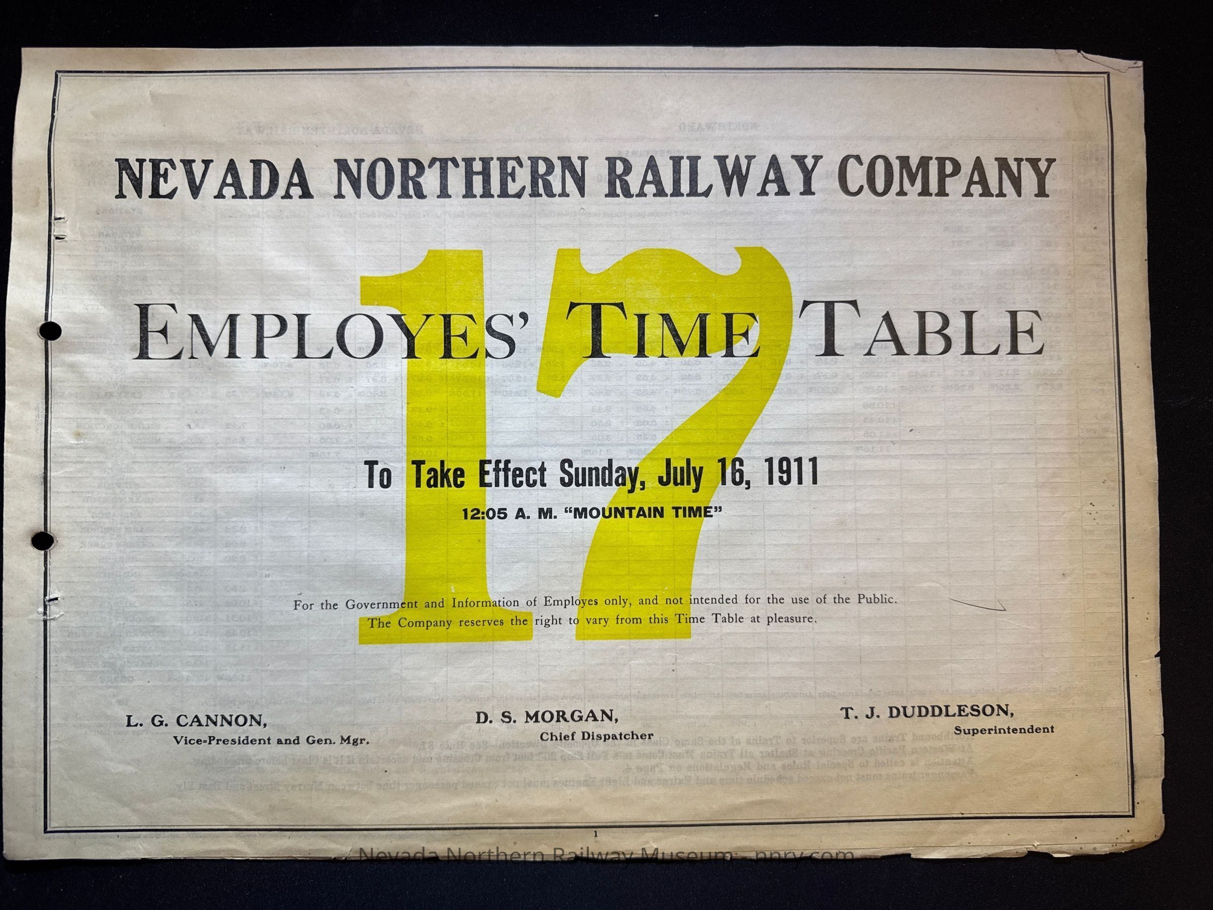 Nevada Northern Railway timetable no. 17, June 16, 1911.