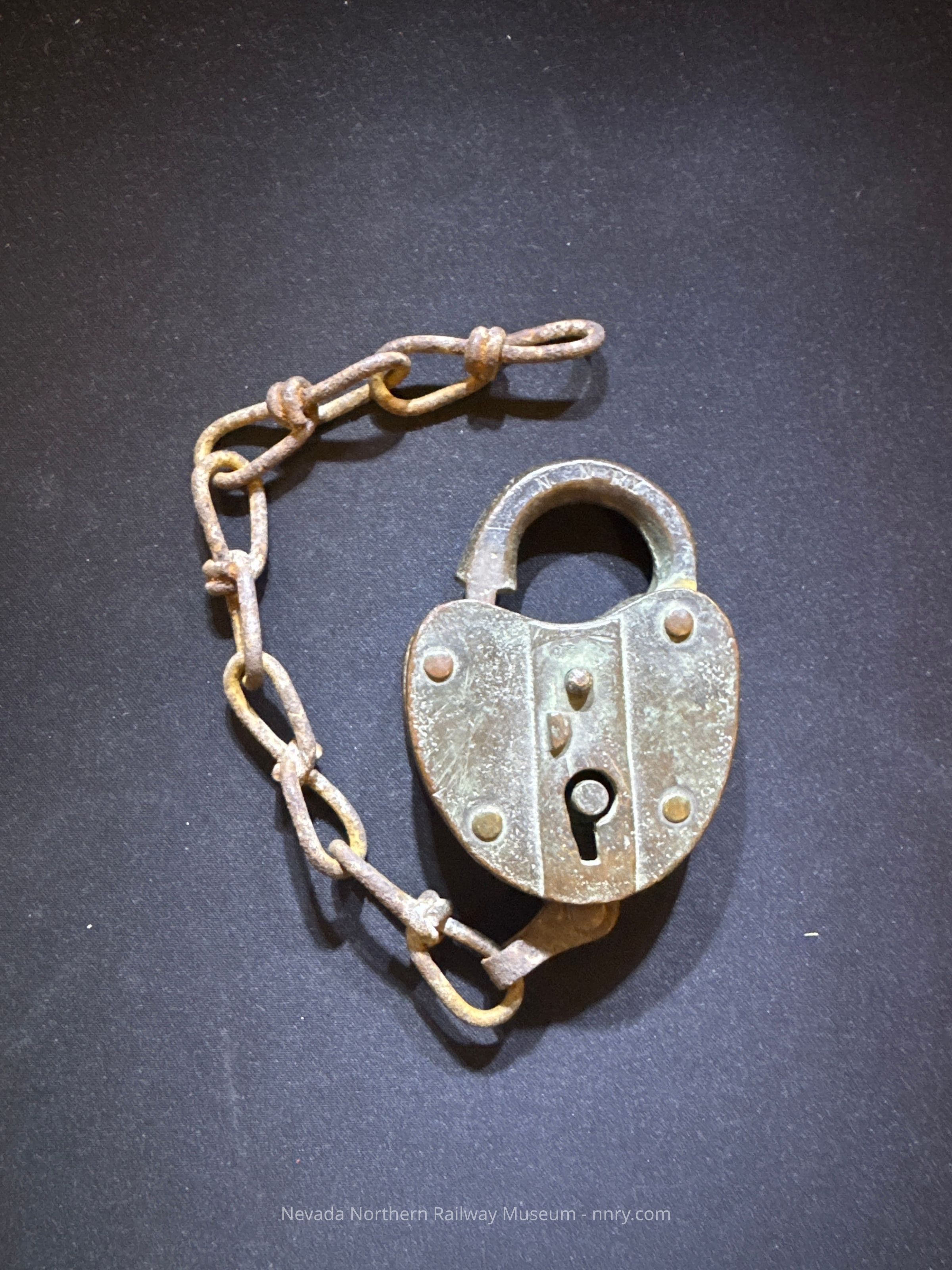 Switch lock with chain marked "NNRY," 1946.Acquisition
