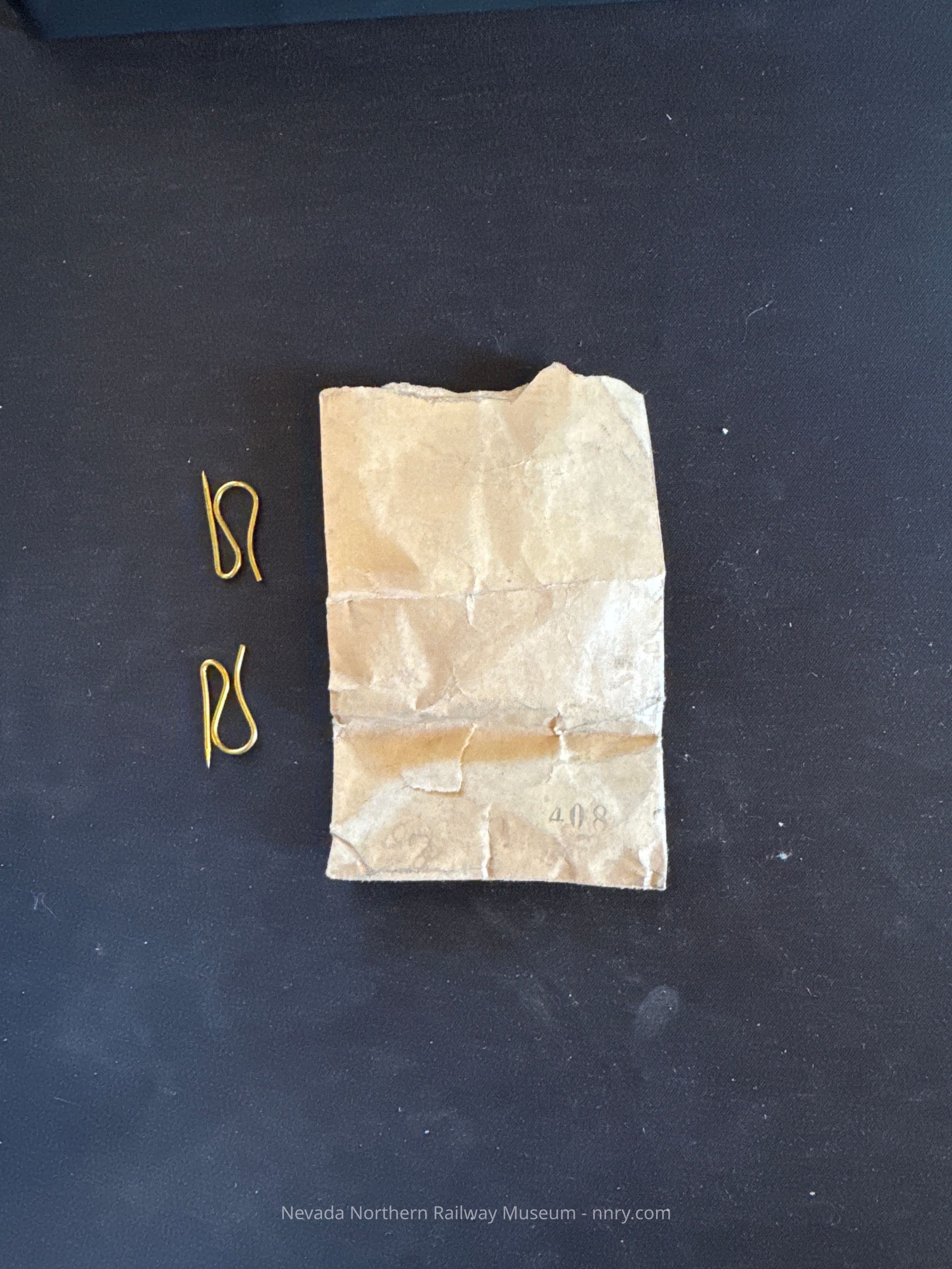 Envelope with brass curtain hooks, believed to be from the Chief Engineer's Office.