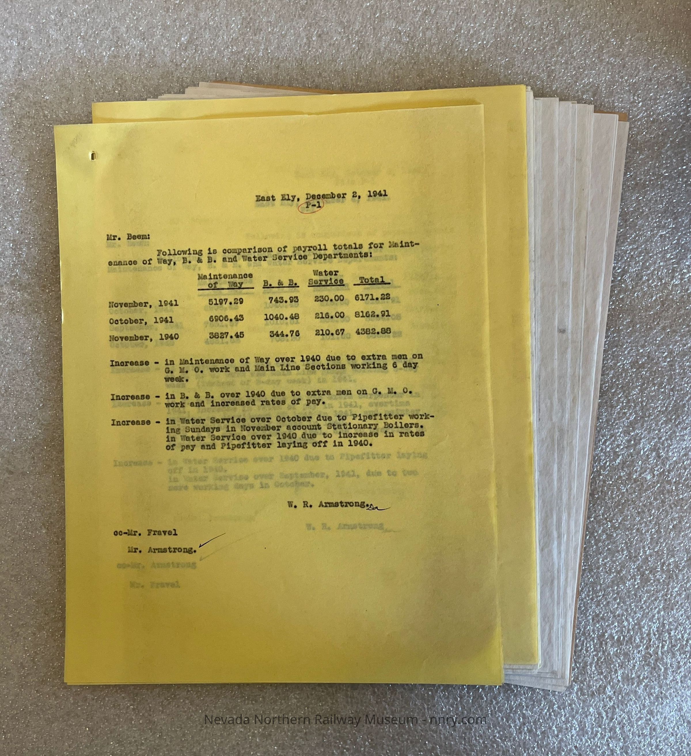 Various correspondence and reports regarding payroll comparisons, 1938-1941.