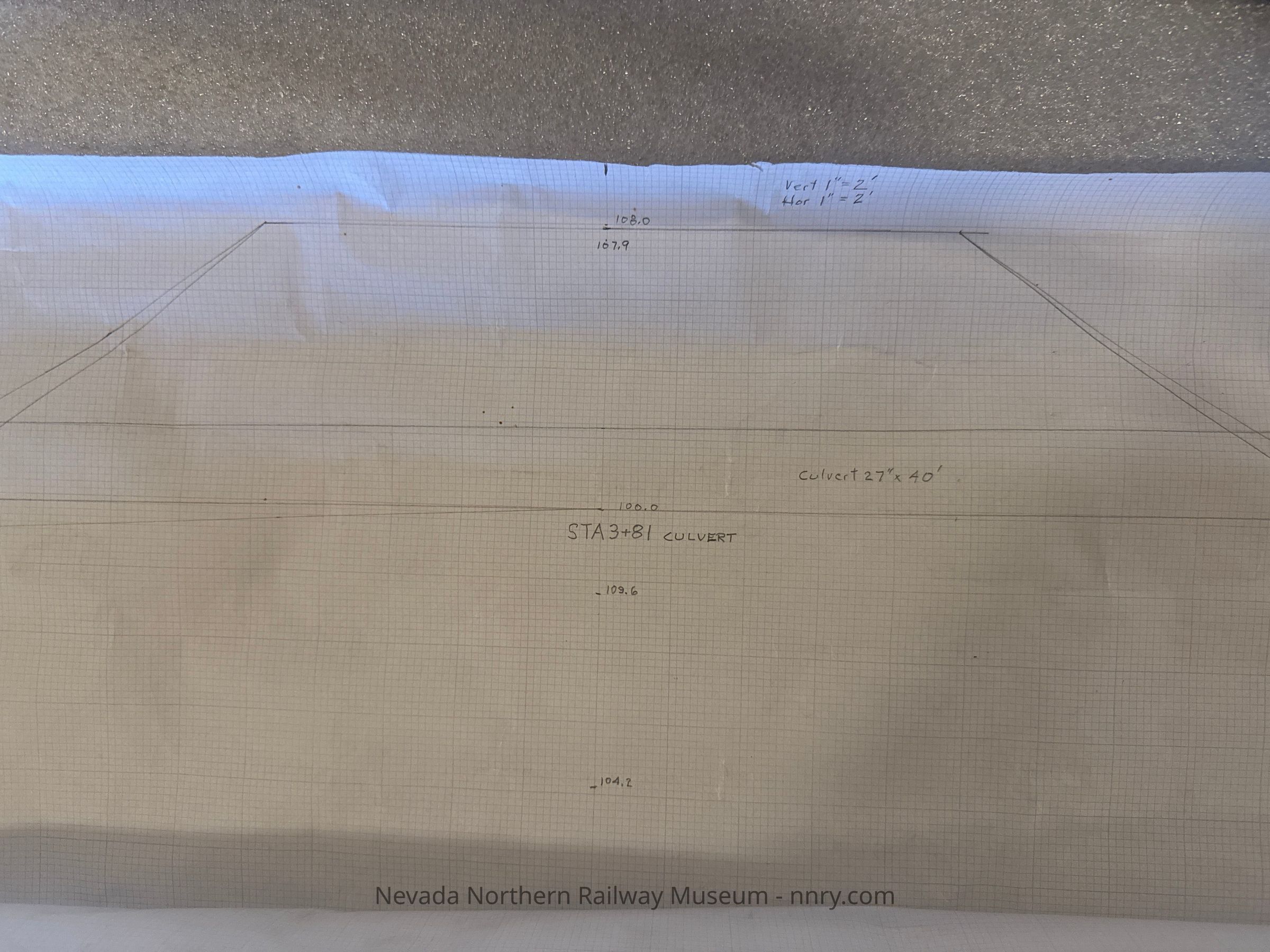Diagram of the design of a culvert at STA 3+81, unknown date.