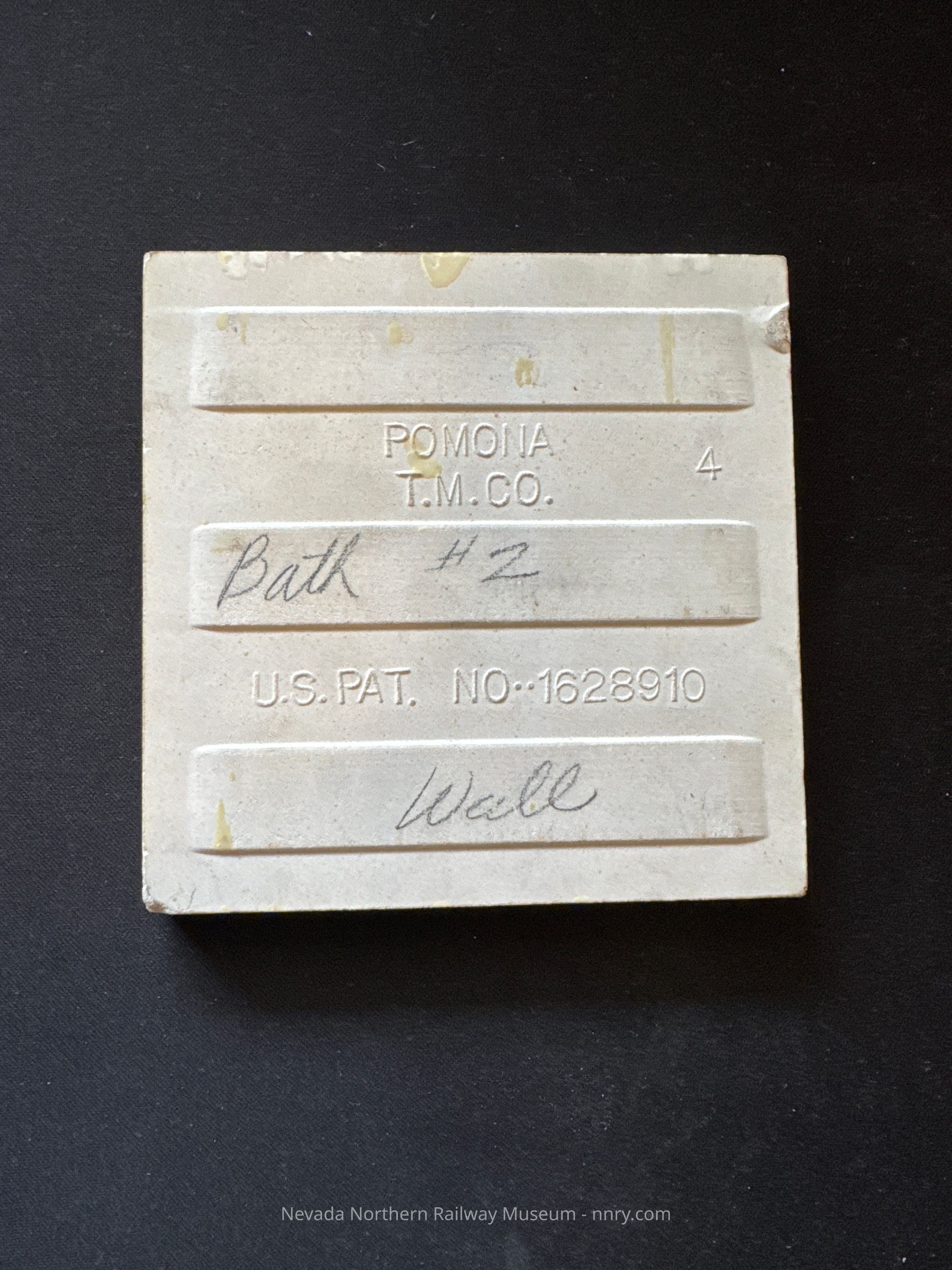 White tile sample for "Bath #2 Wall." From temporary box T-87.Made/Created