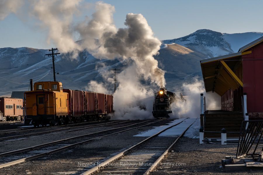 Locomotive #93 in the East Ely Yard in the morning, February 2024.