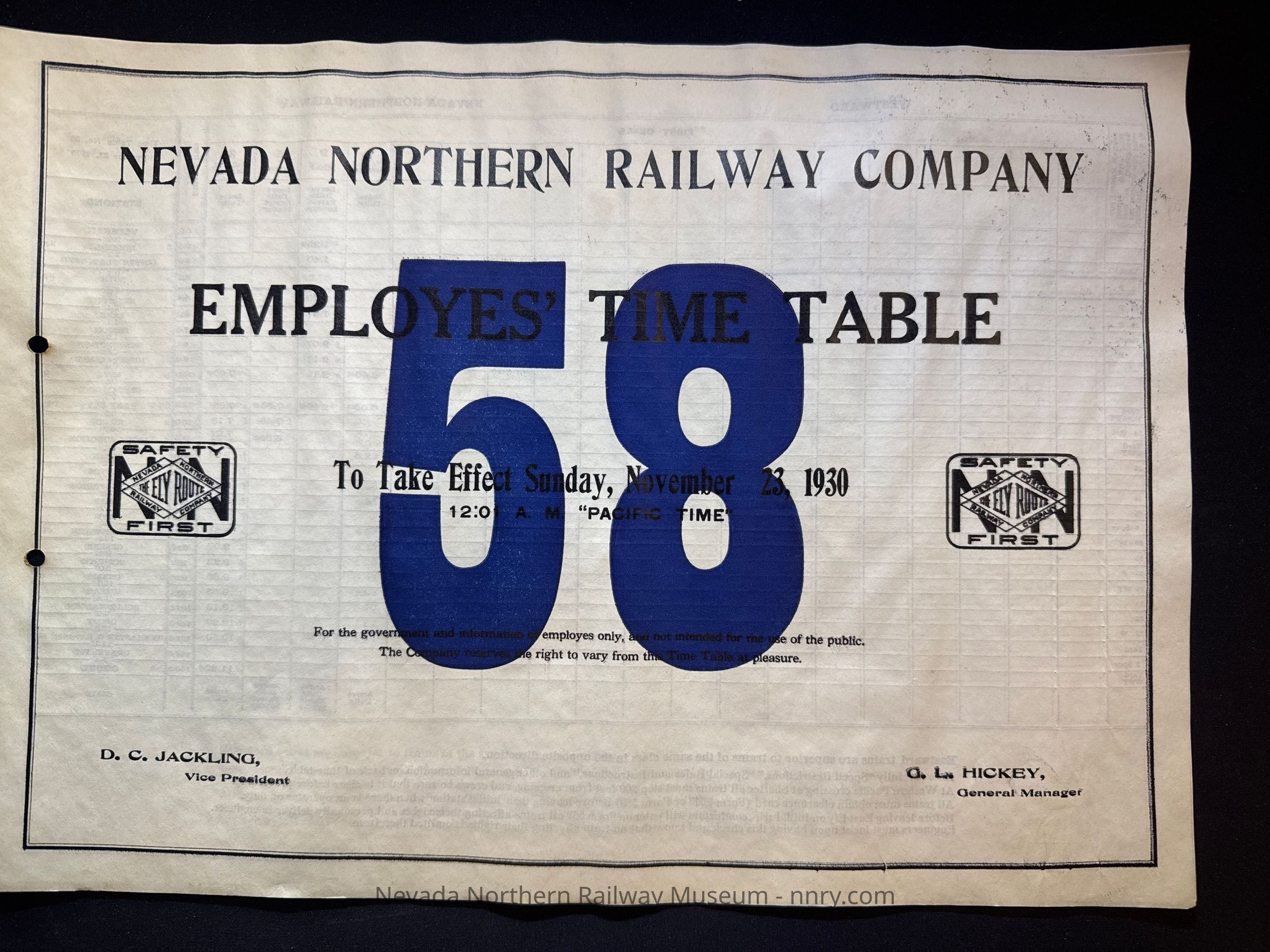 Nevada Northern Railway timetable no. 58, November 23, 1930.