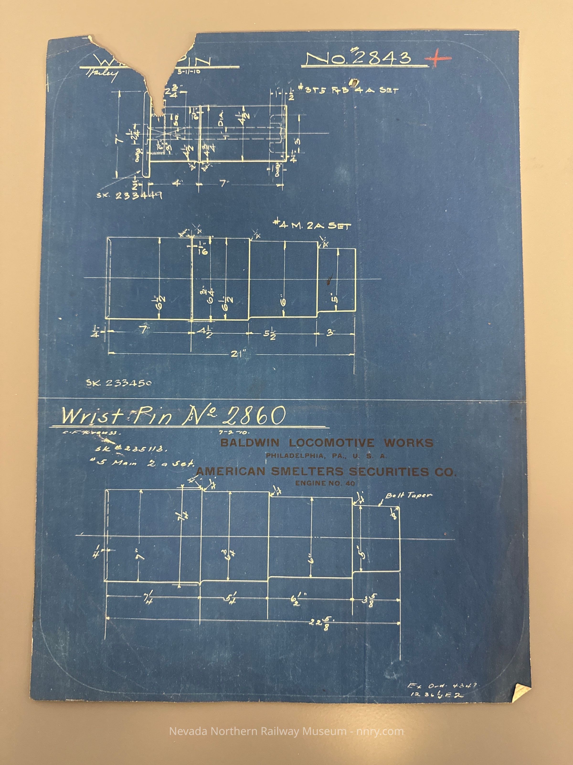 Blueprint for the wrist pin no. 2843 on locomotive #40, May 11, 1910.Creator